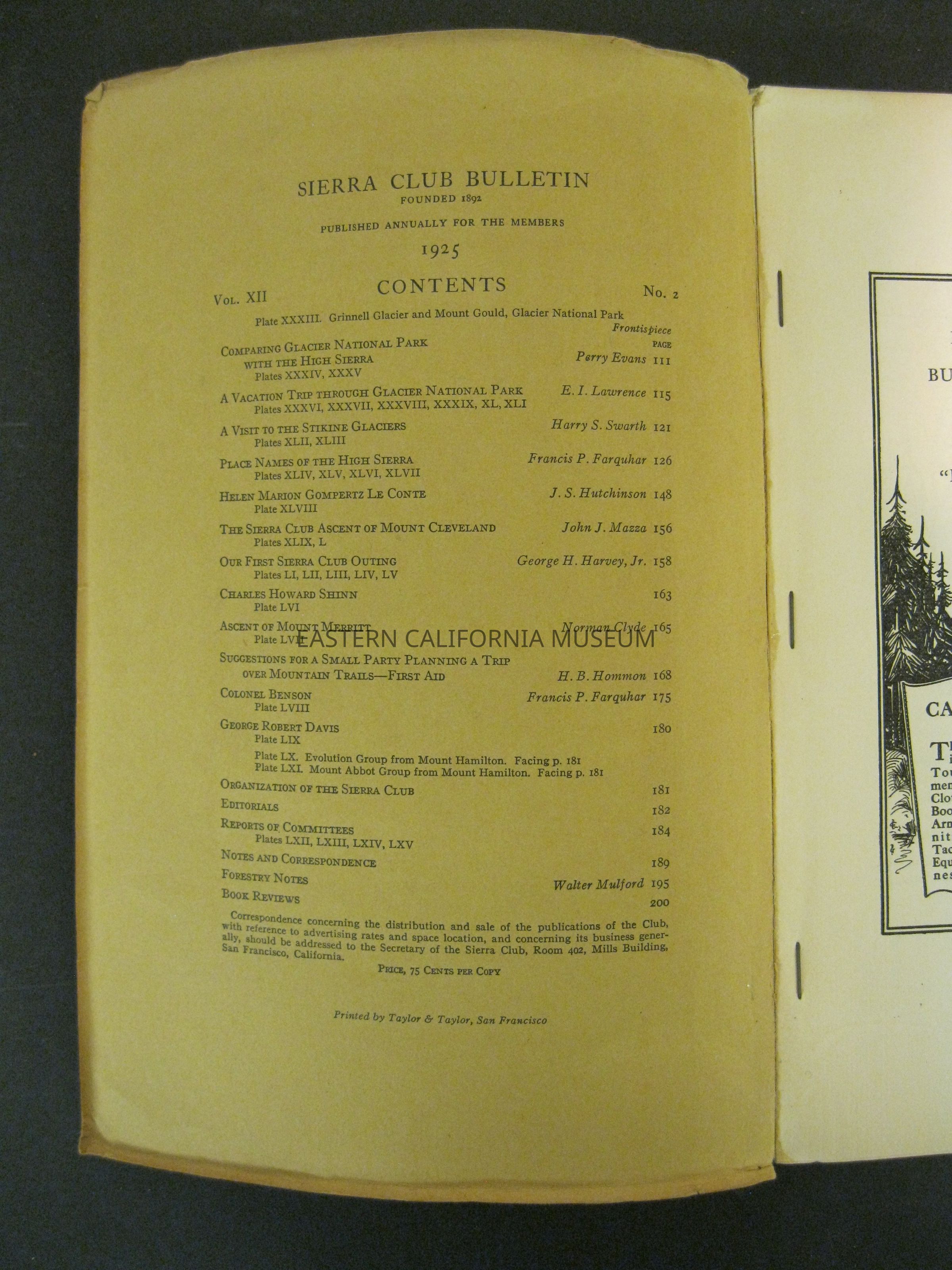 "Sierra Club Bulletin, Vol. XII, No. 2, 1925"Publication Details