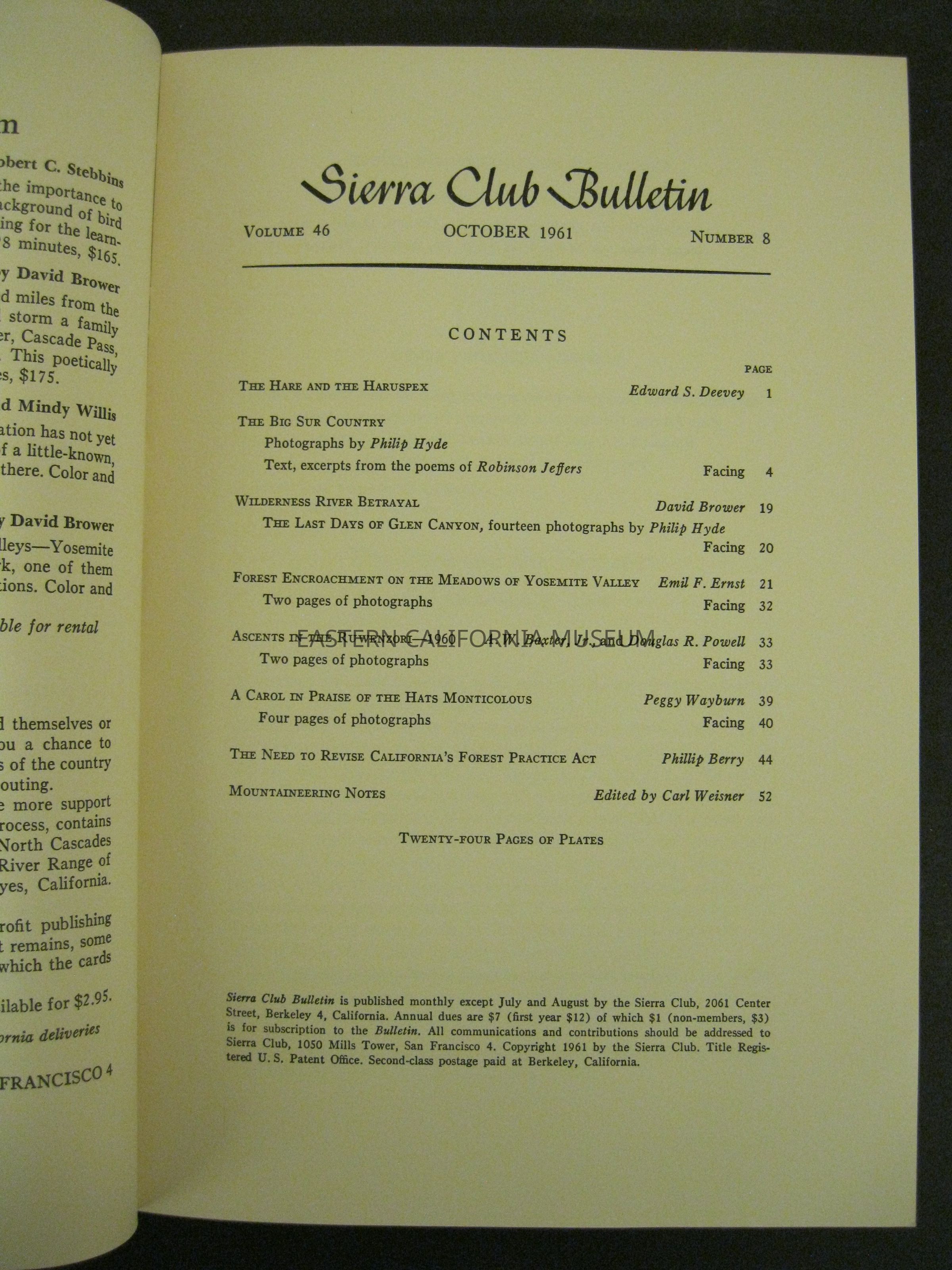 Sierra Club Bulletin, Vol. Vol. 4, No. 8, October 1961Entry/Object ID