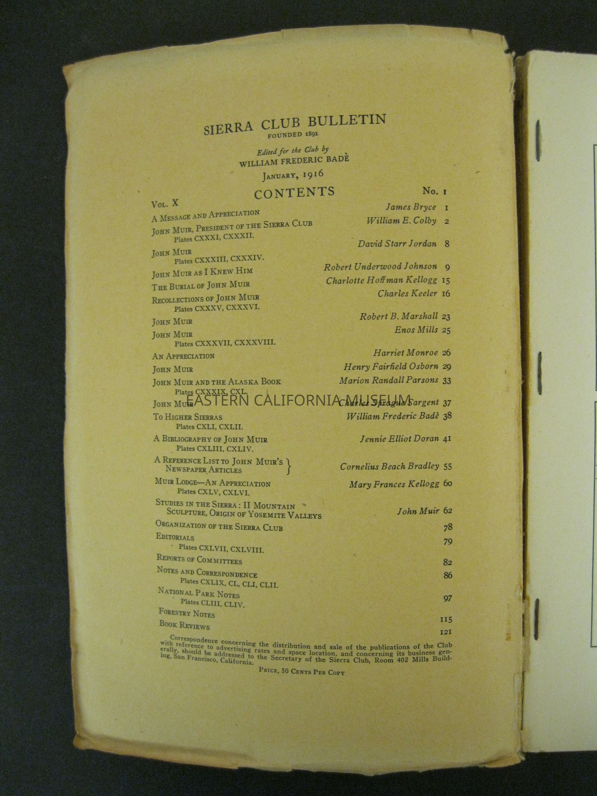 Sierra Club Bulletin, Vol. X, No. 1, January 1916Entry/Object ID
