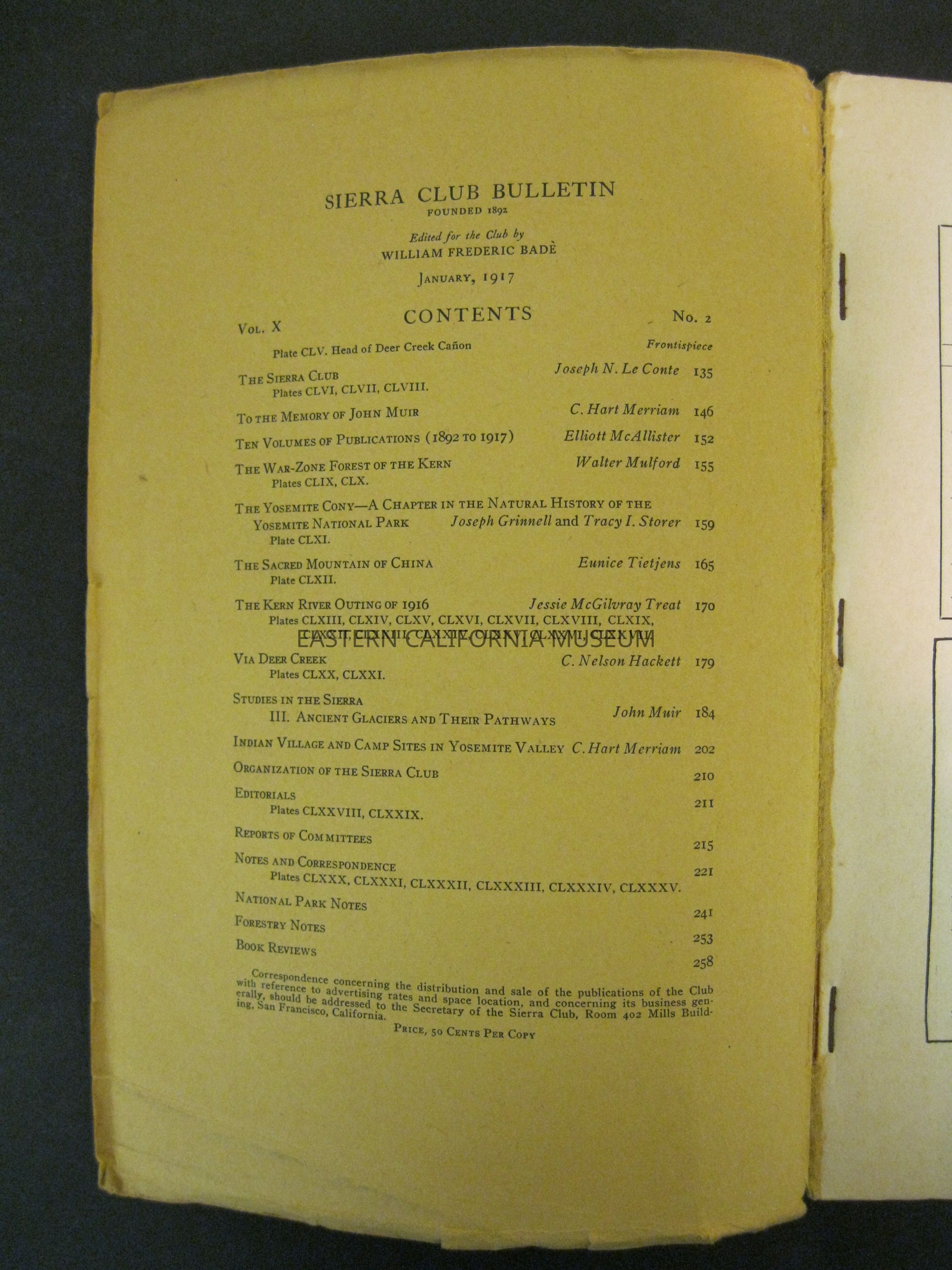 "Sierra Club Bulletin, Vol. X, No. 2, January 1917"Publication Details