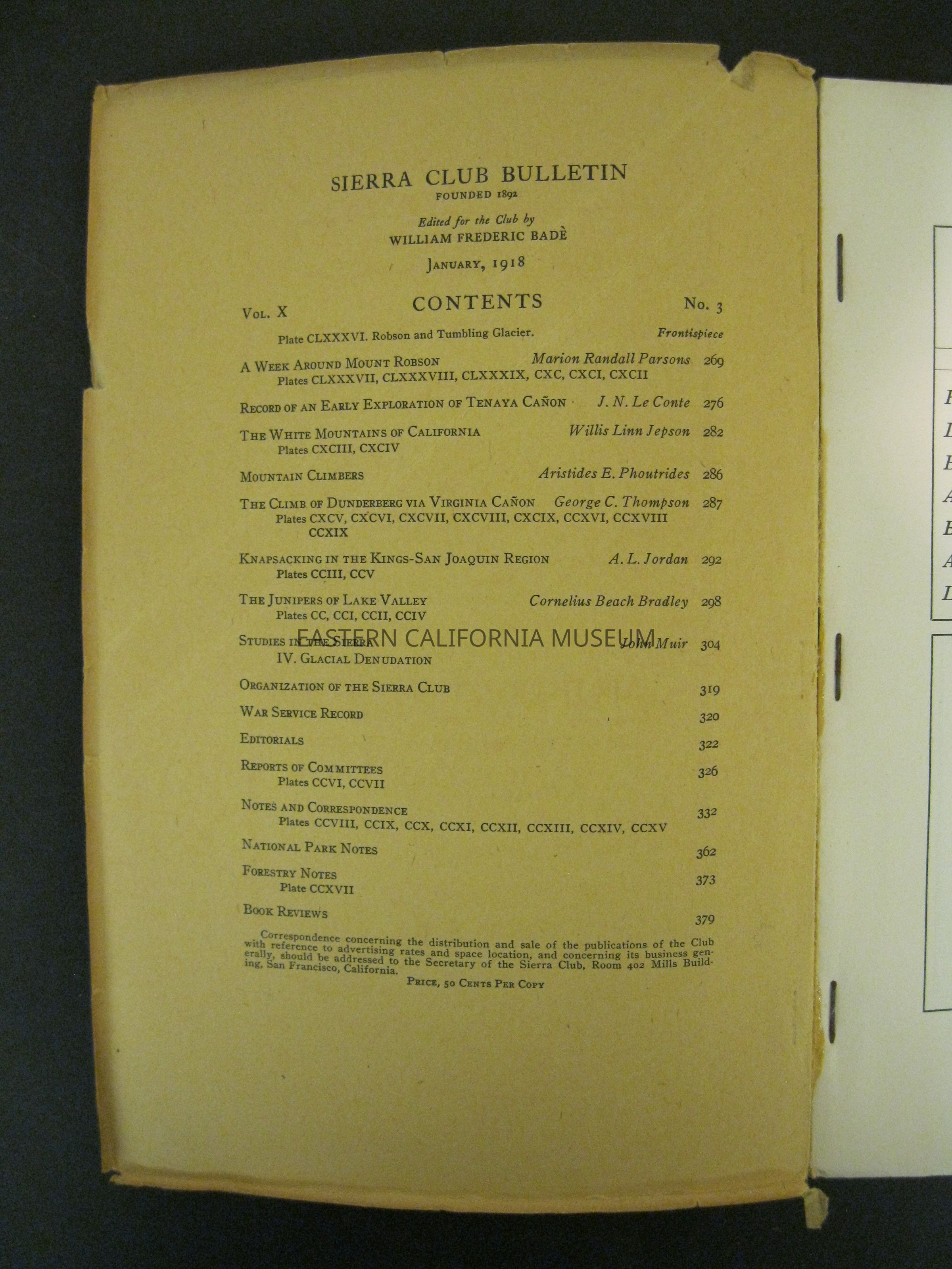 "Sierra Club Bulletin, Vol. X, No. 3, January 1918"Publication Details
