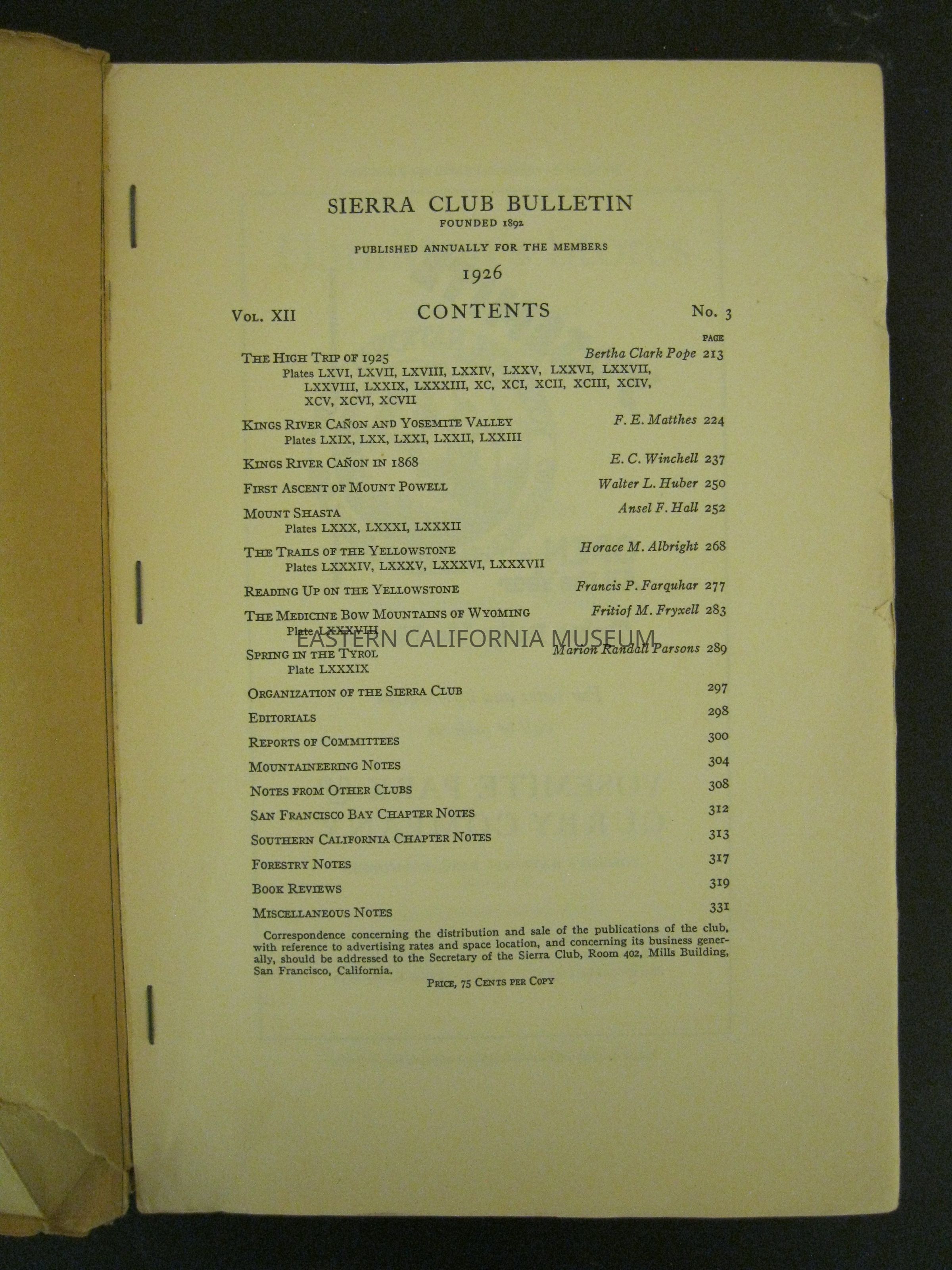 Sierra Club Bulletin, Vol. XII, No. 3, 1926Entry/Object ID