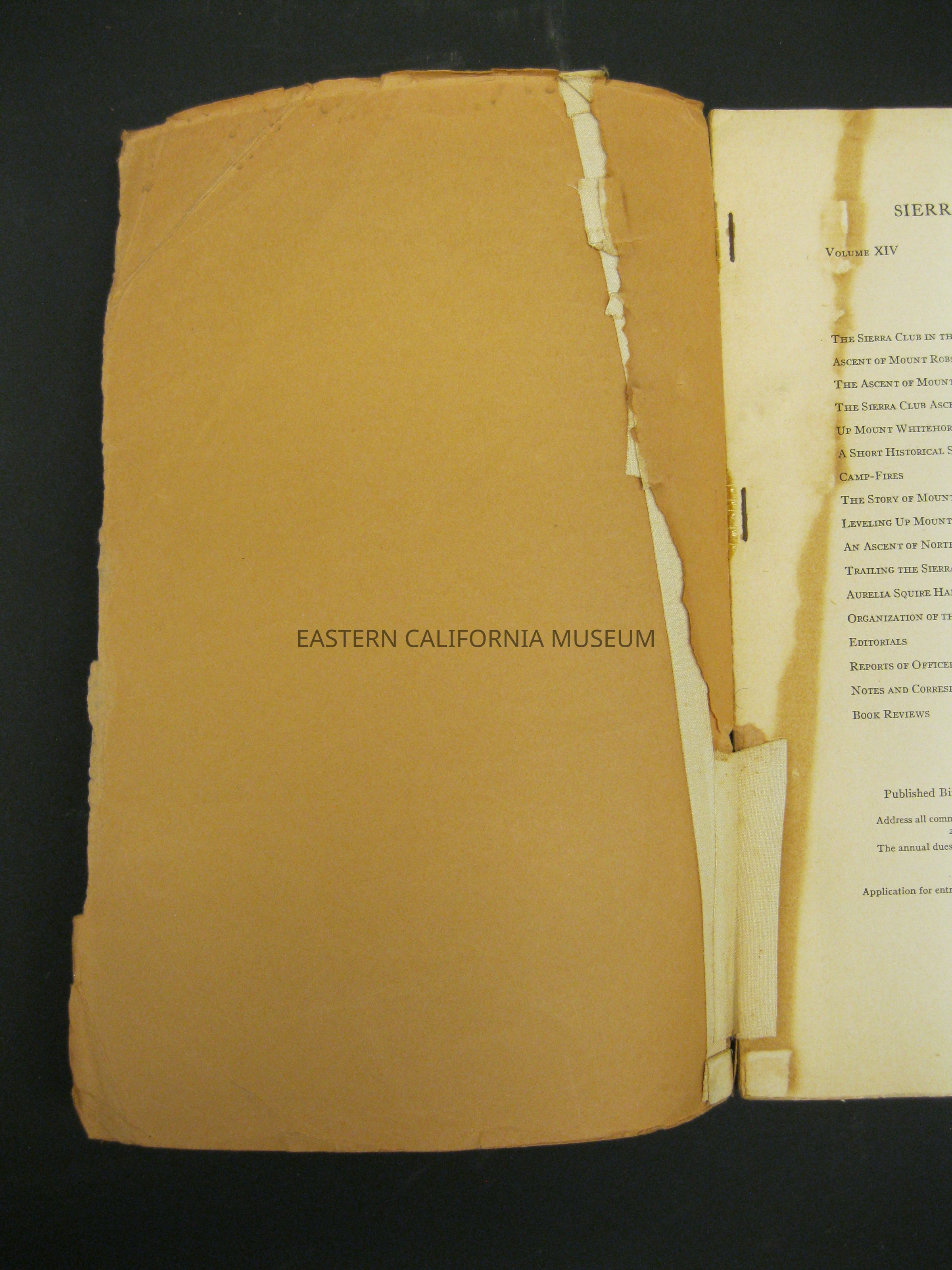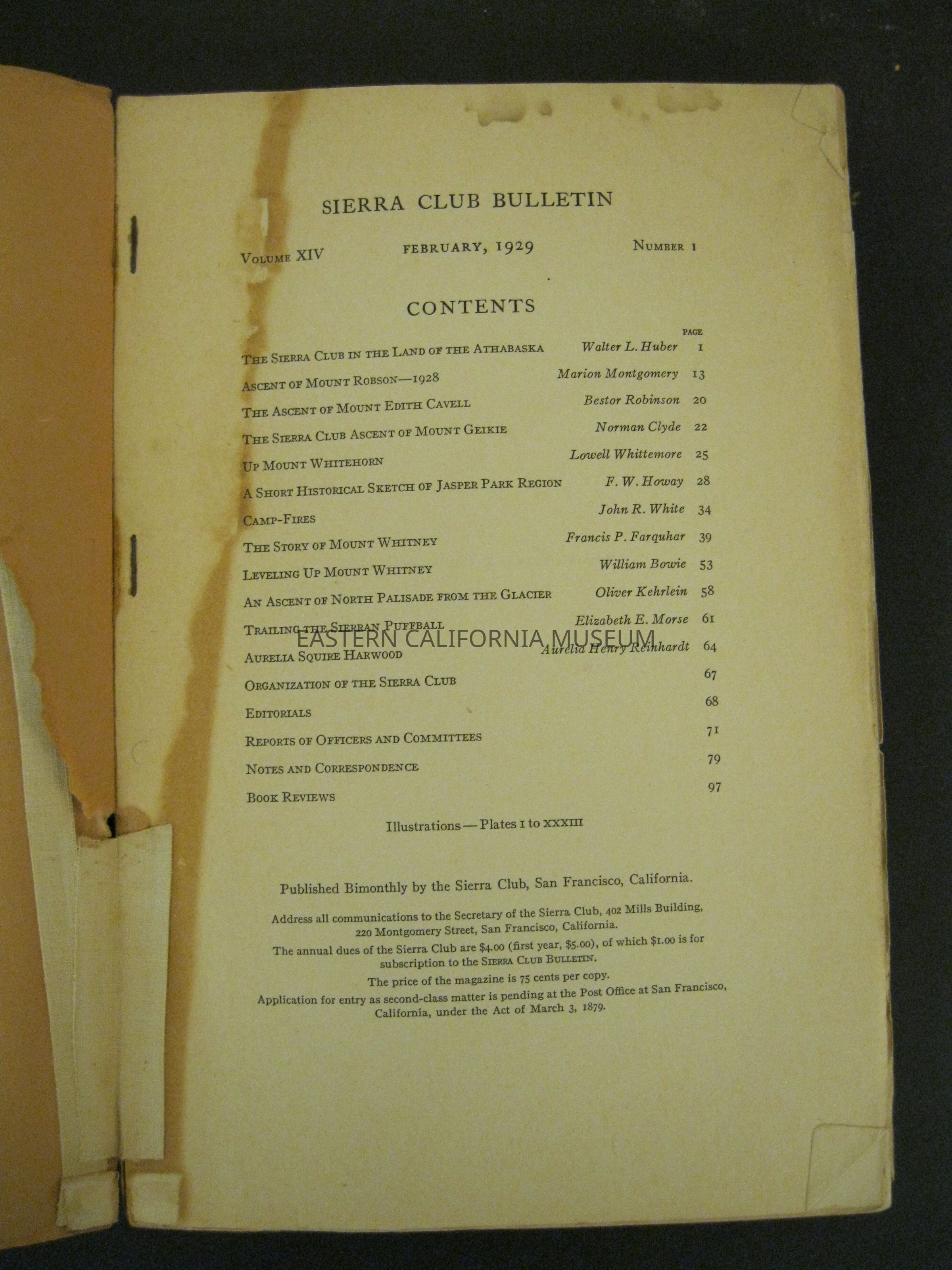 "Sierra Club Bulletin, Vol. XIV, No. 1, February 1929" has a mended front cover.Publication Details