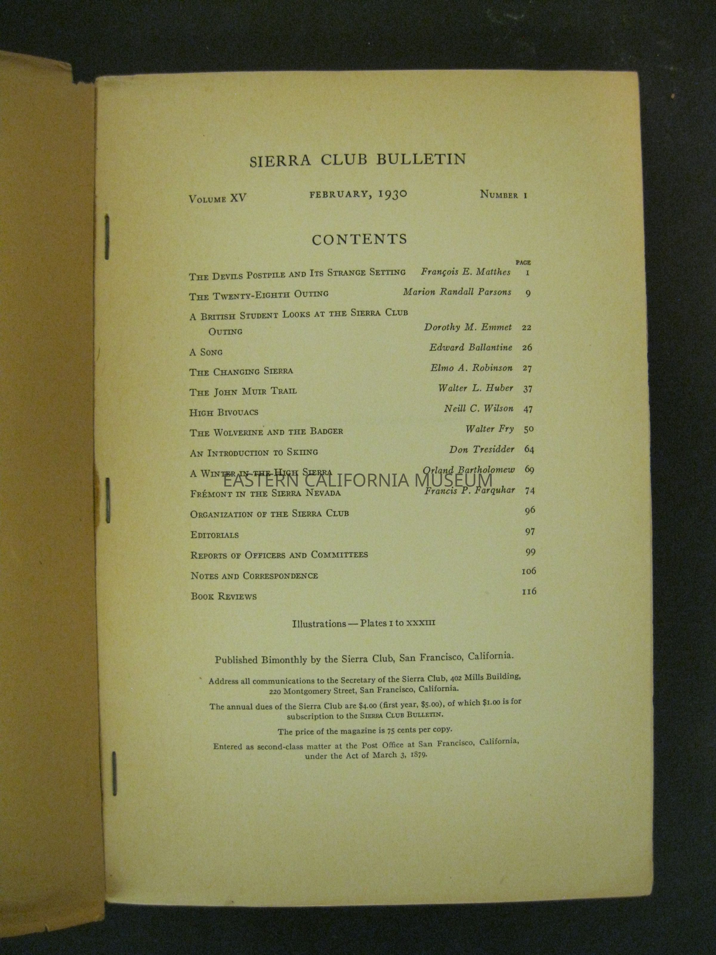 Sierra Club Bulletin, Vol. XV, No. 1, February 1930Entry/Object ID