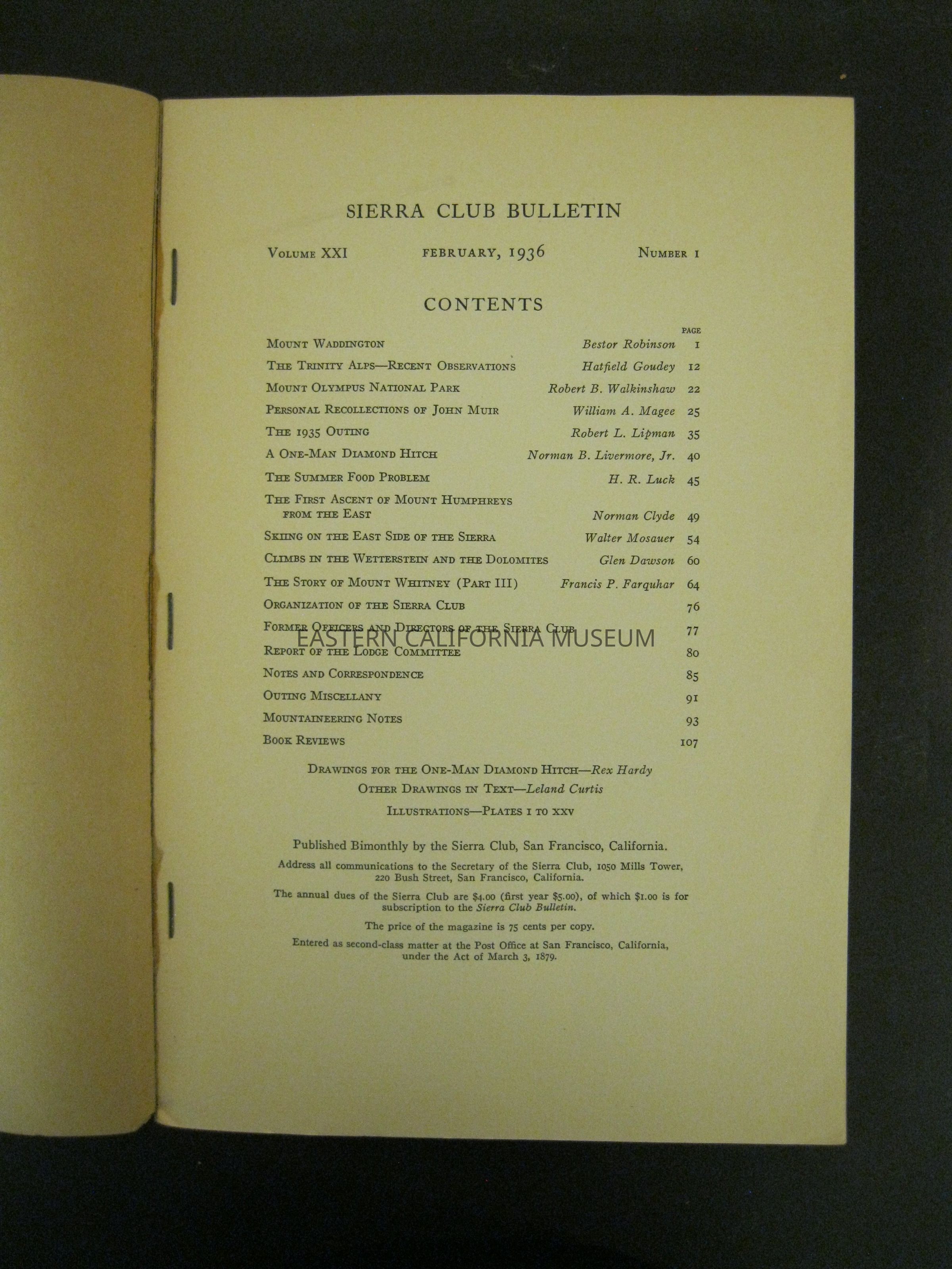 Sierra Club Bulletin, Vol. XXI, No. 1, February 1936Entry/Object ID