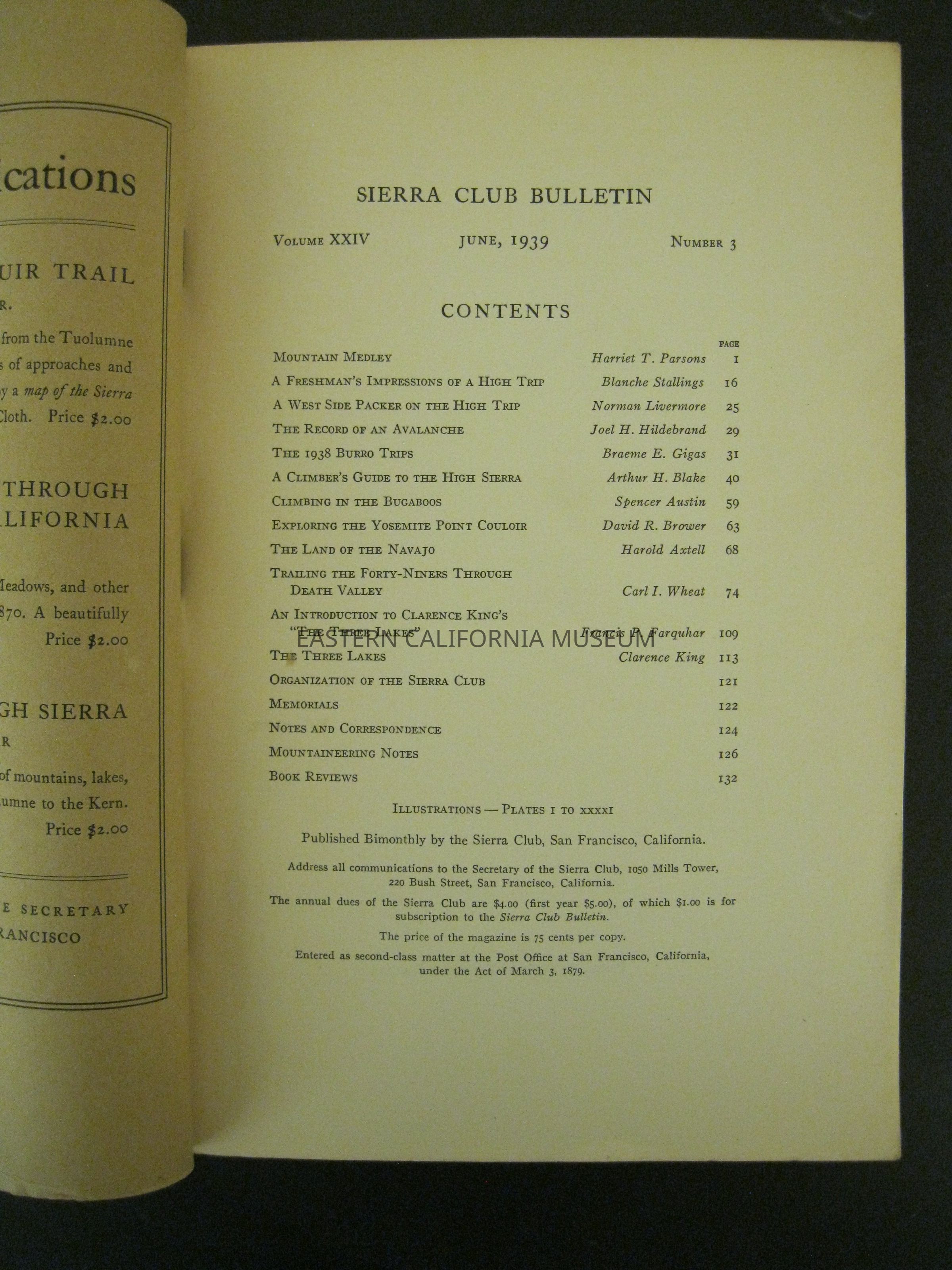 Sierra Club Bulletin, Vol. XXIV, No. 3, June 1939Entry/Object ID