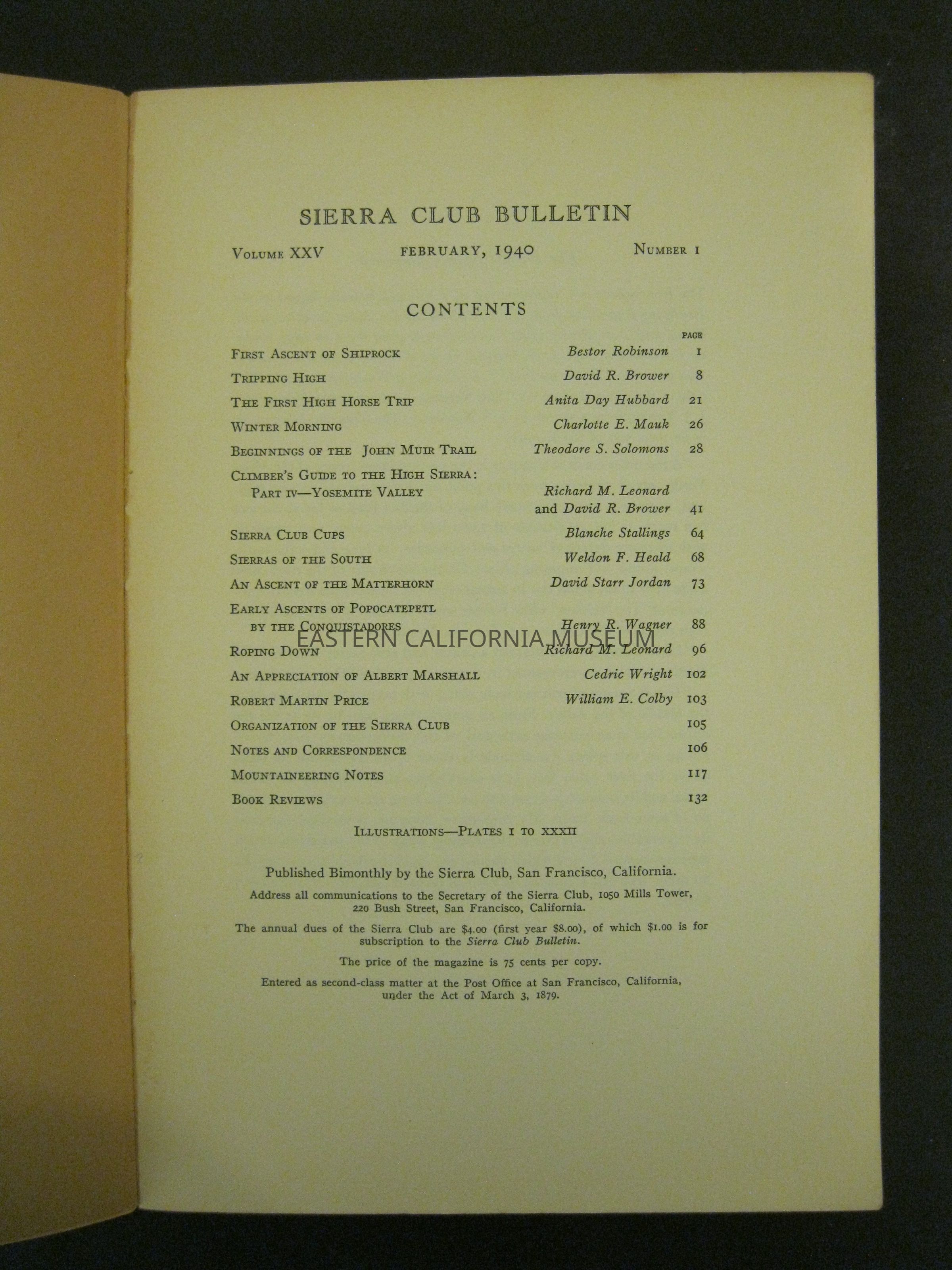 Sierra Club Bulletin, Vol. XXV, No. 1, February 1940Entry/Object ID