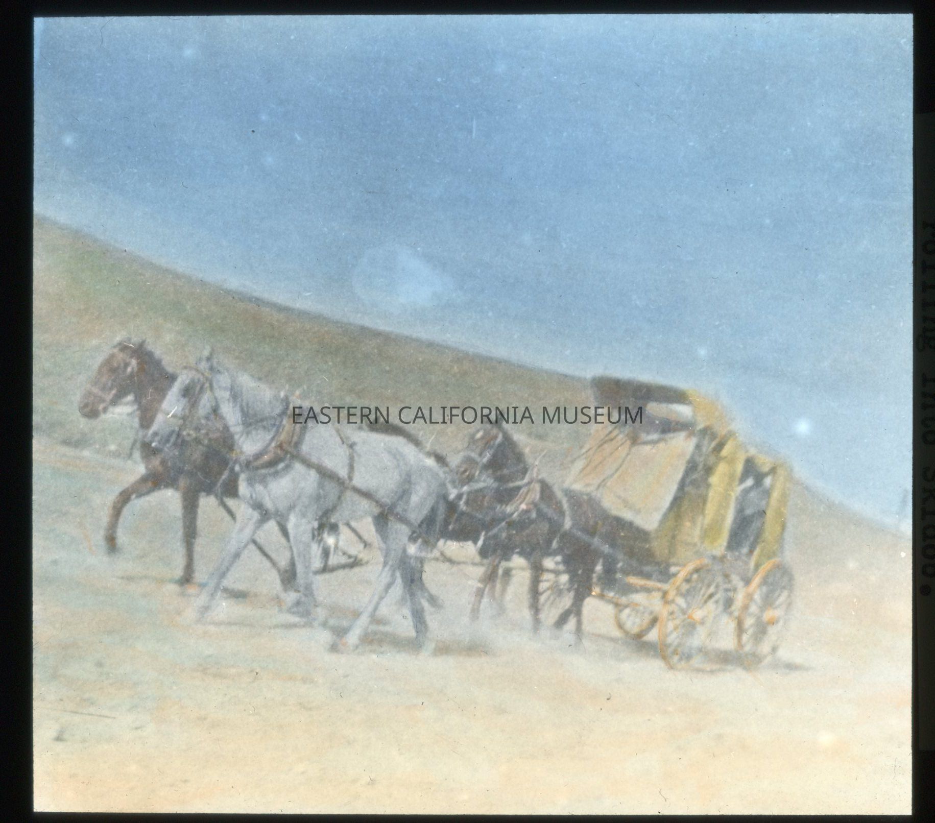 2023.0.79--#1348. Death Valley -- View of stage rolling into Skidoo. [Circle sticker #1]