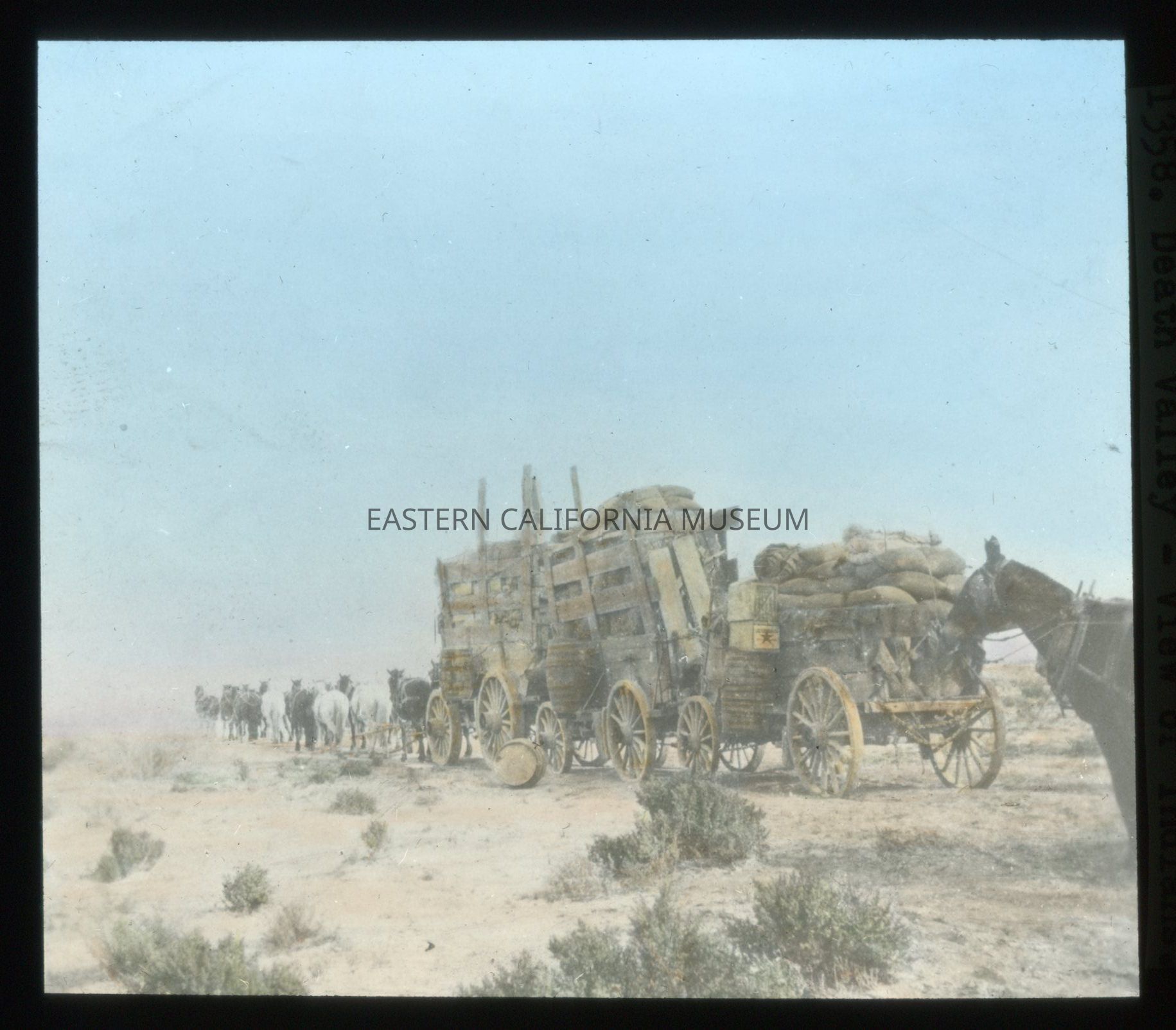2023.0.82--#1358. Death Valley -- View of Indians. [Circle sticker #3]. [NOTE: This description/label is incorrect. It is a photo of the Rose and Palmer freight team leaving Las Vegas for Beatty Nev. in 1905.]Made/Created