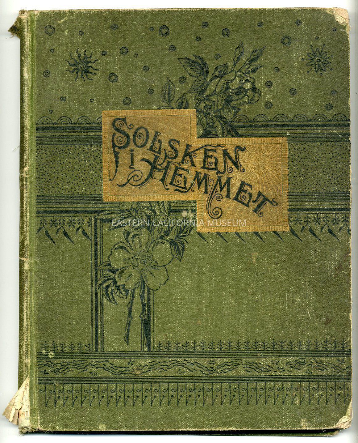 "Solsken i Hemmet" is a book written in Swedish. The title page says, "Solsken i Hemmet, illustrerade sidor for barnen, ungdomen, horaldrarne. Ett omvexlande urval af naturhistoria, biografi och bibelscener. Nara tva hundra illustrationer. Utgifven af Sanningens Harolds Tryckeribolag, Battle Creek, Michigan."Collection