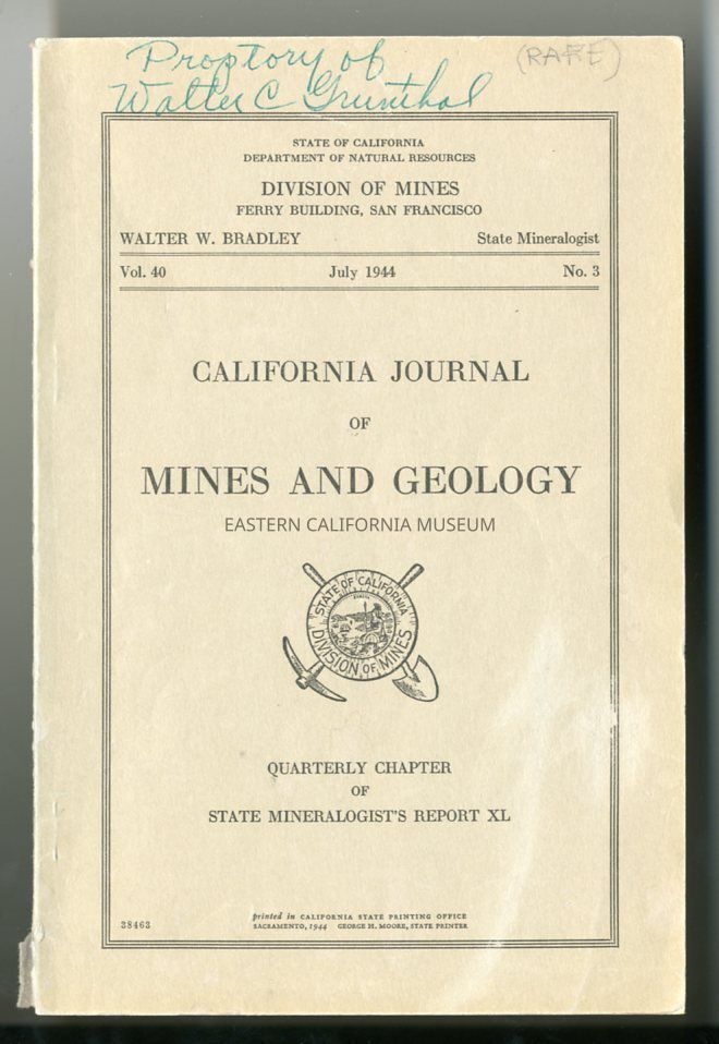 "State of California, Department of Natural Resources, Division of Mines, California Journal of Mines and Geology, Vol. 40, No. 3, July 1944" was previously owned by Walter C. Grunthal.Publication Details