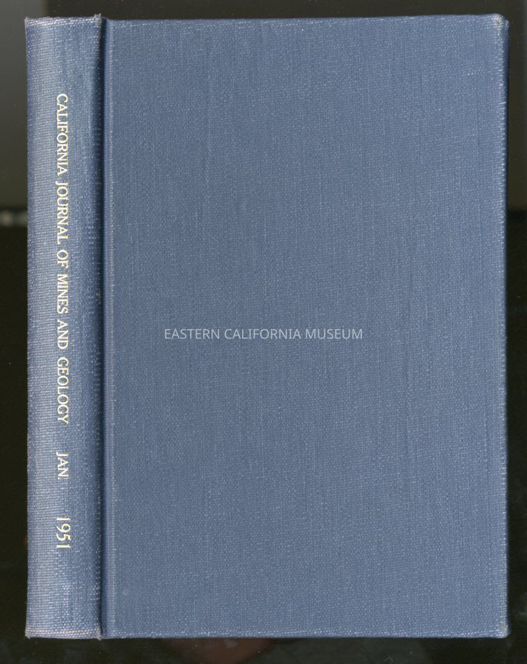 "State of California, Department of Natural Resources, Division of Mines, California Journal of Mines and Geology, Vol. 47, No. 1, January 1951" has been rebound. Contains an article titled "Mines and Mineral Resources of Inyo County" by L. A. Norman, Jr. and Richard M. Stewart. Contains 2 of 2 maps in back pocket.Publication Details