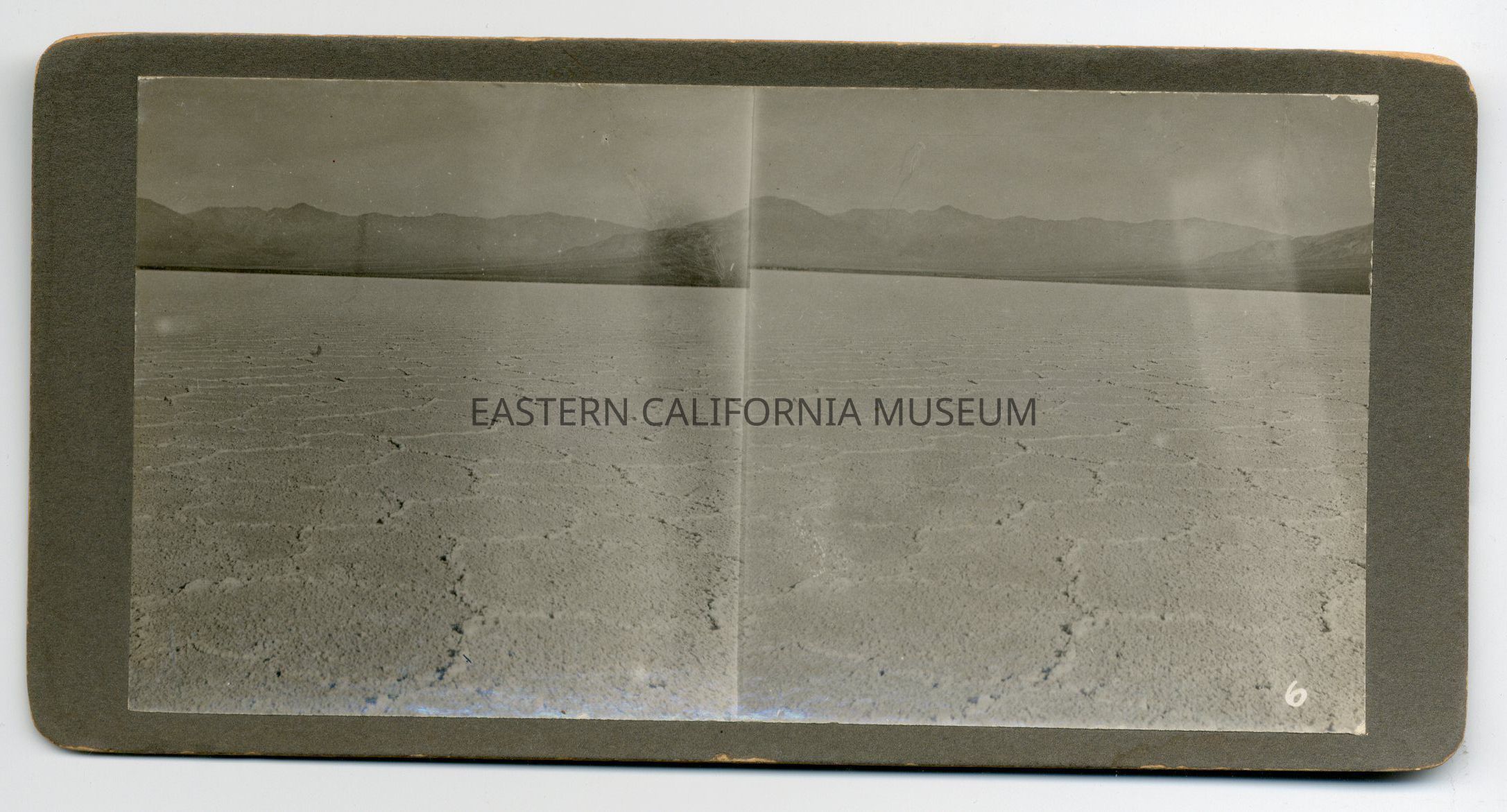 Stereograph of the Saline Valley salt lake bed. Photographed by Pacific Art Co. of Los Angeles and given their ID #6.Collection