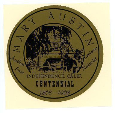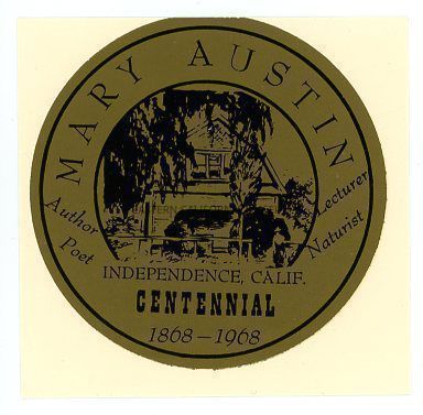 Two stickers made for the Mary Austin Centennial, 1868-1968. They were inside the Mary Hunter Austin Centennial booklets.