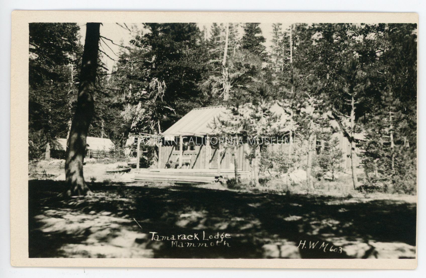 Photo postcard titled, "Tamarack Lodge, Mammoth" taken by photographer H. W. Mendenhall and given his ID #603.Collection