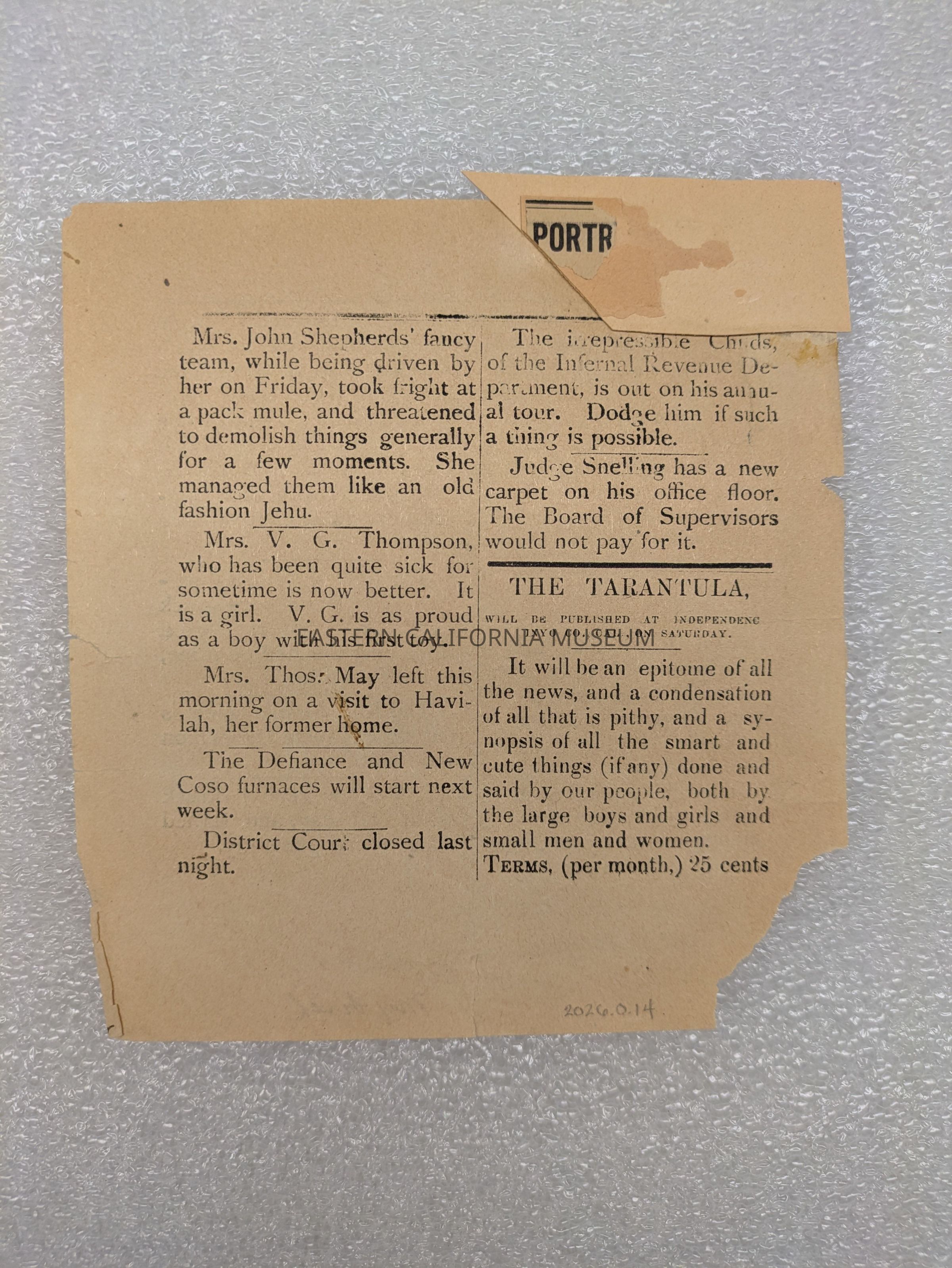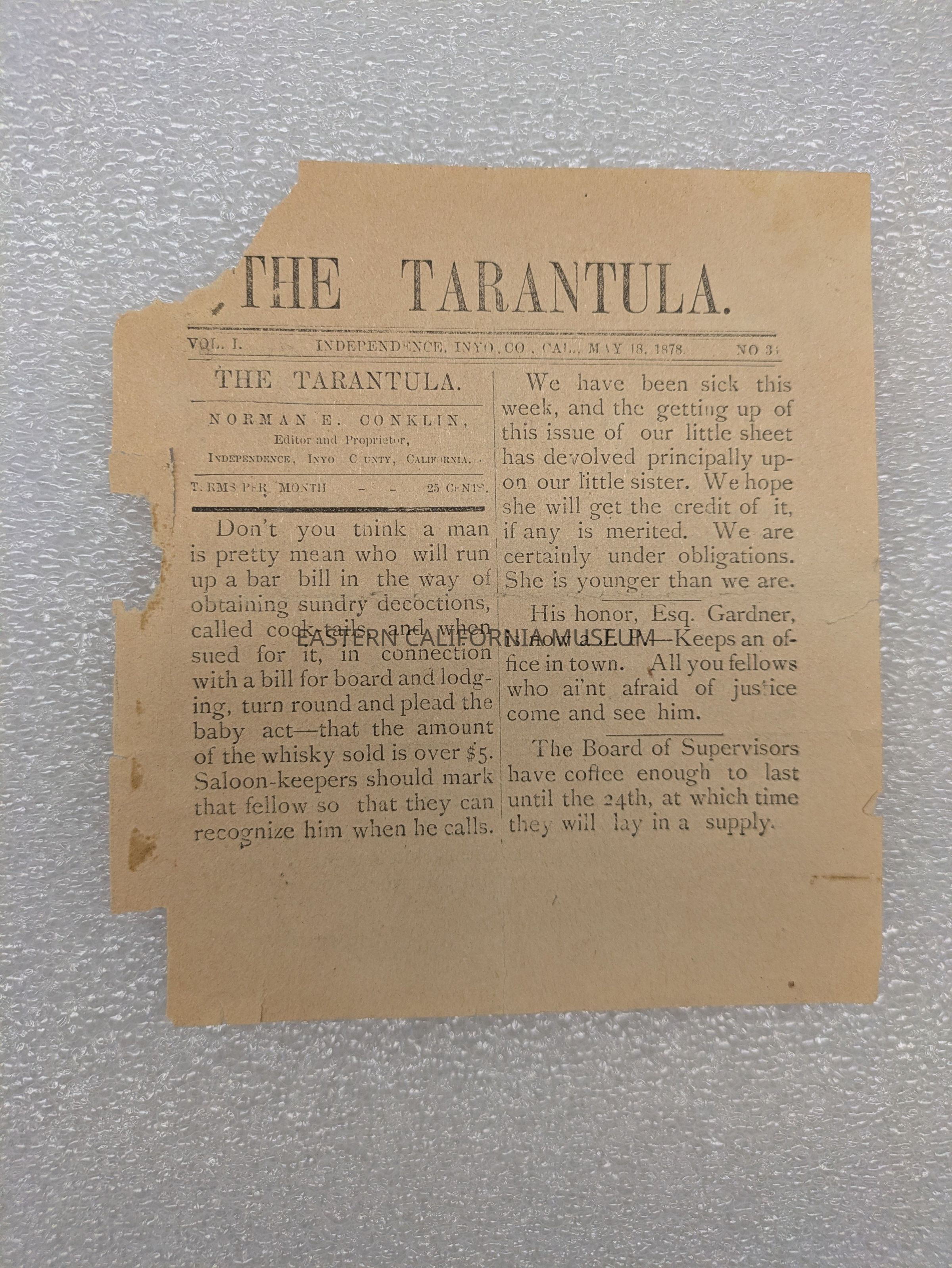 Newspaper: Tarantula, Vol. I, No. 3- [33?], May 18, 1878.