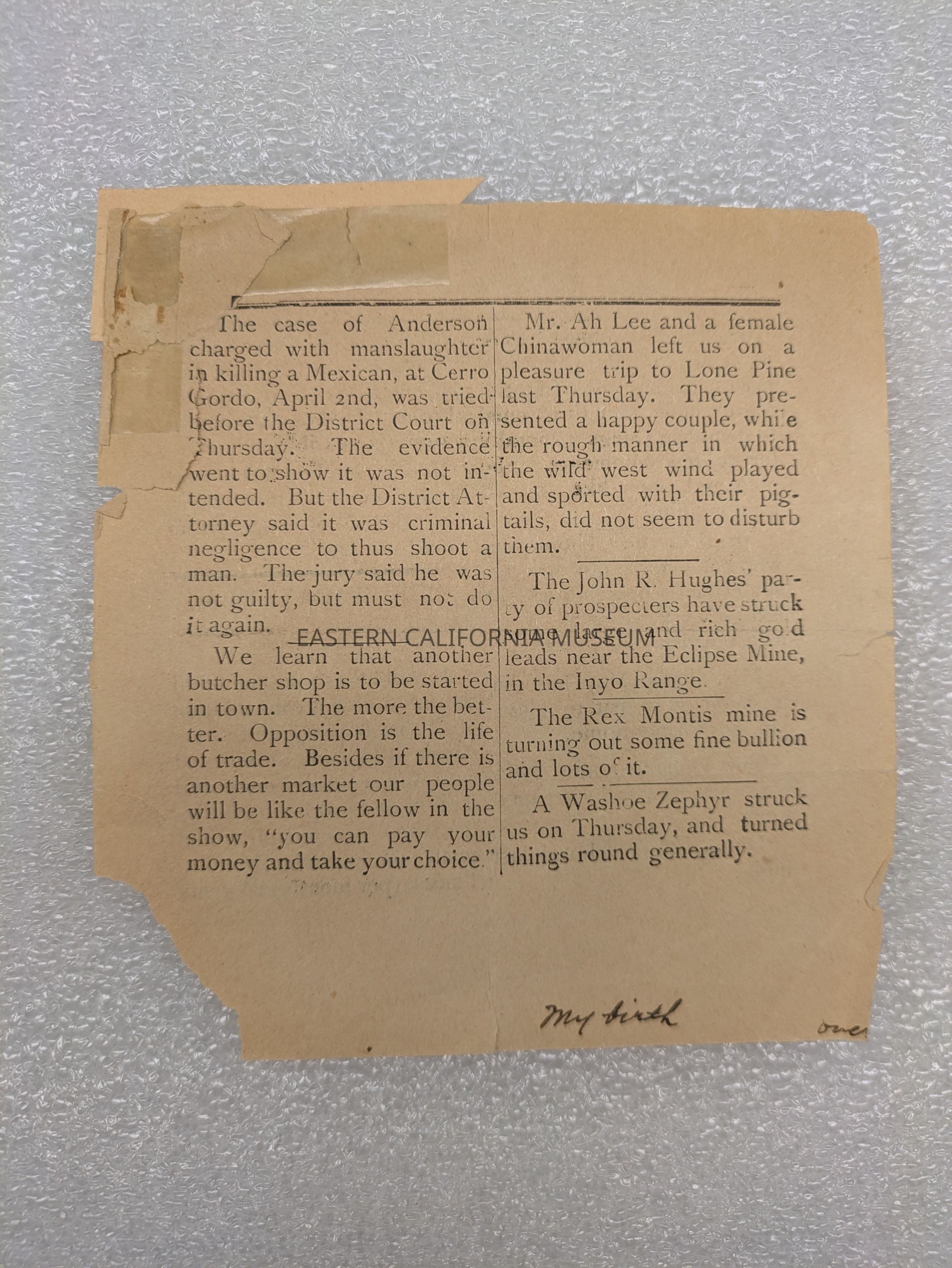 Written in ink is "my birth, over" referring to the birth of V. G. Thompson's daughter, Lizzie Thompson Bunney.Publication Details