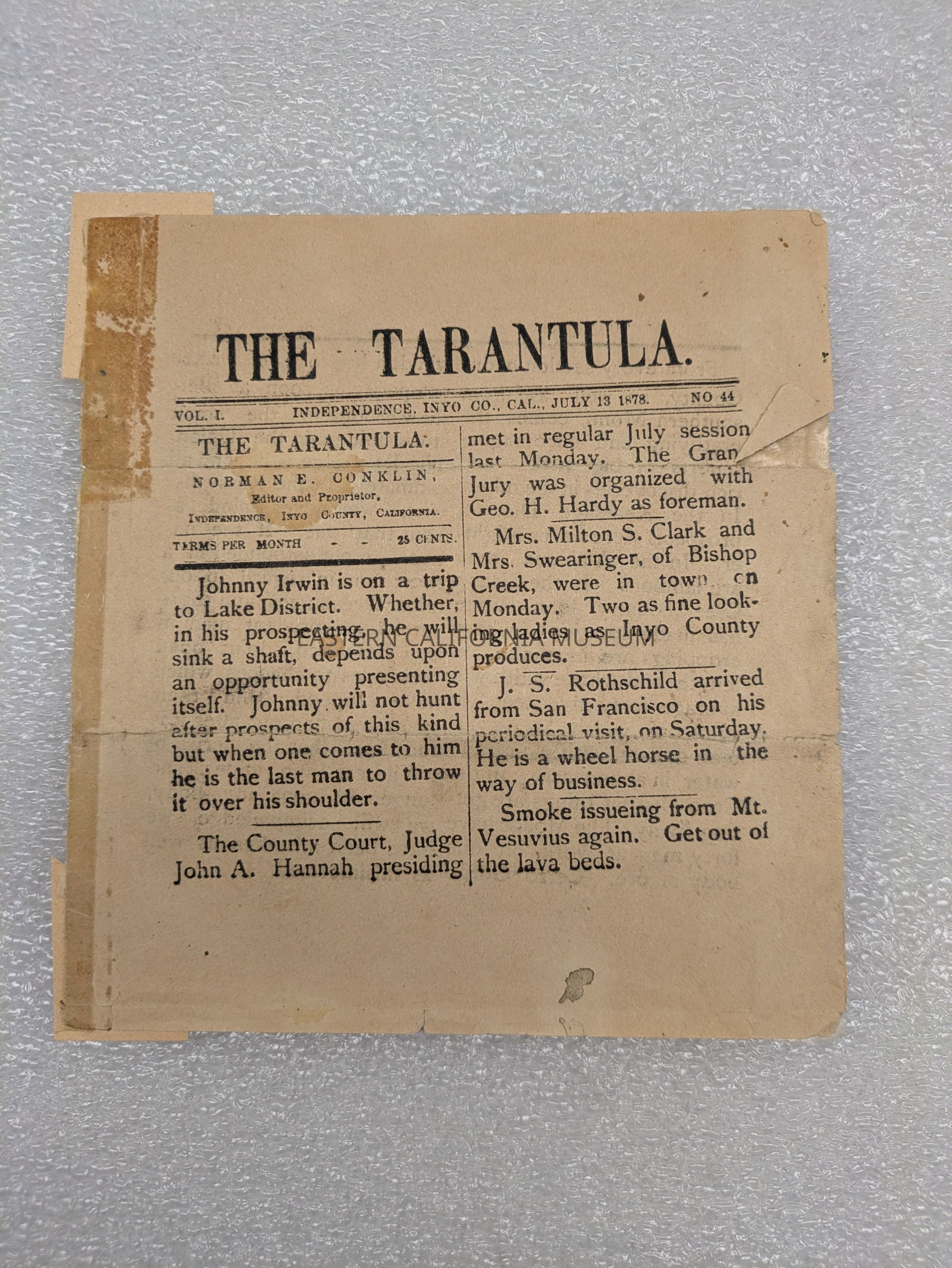 Newspaper: Tarantula, Vol. I, No. 44, July 13, 1878.