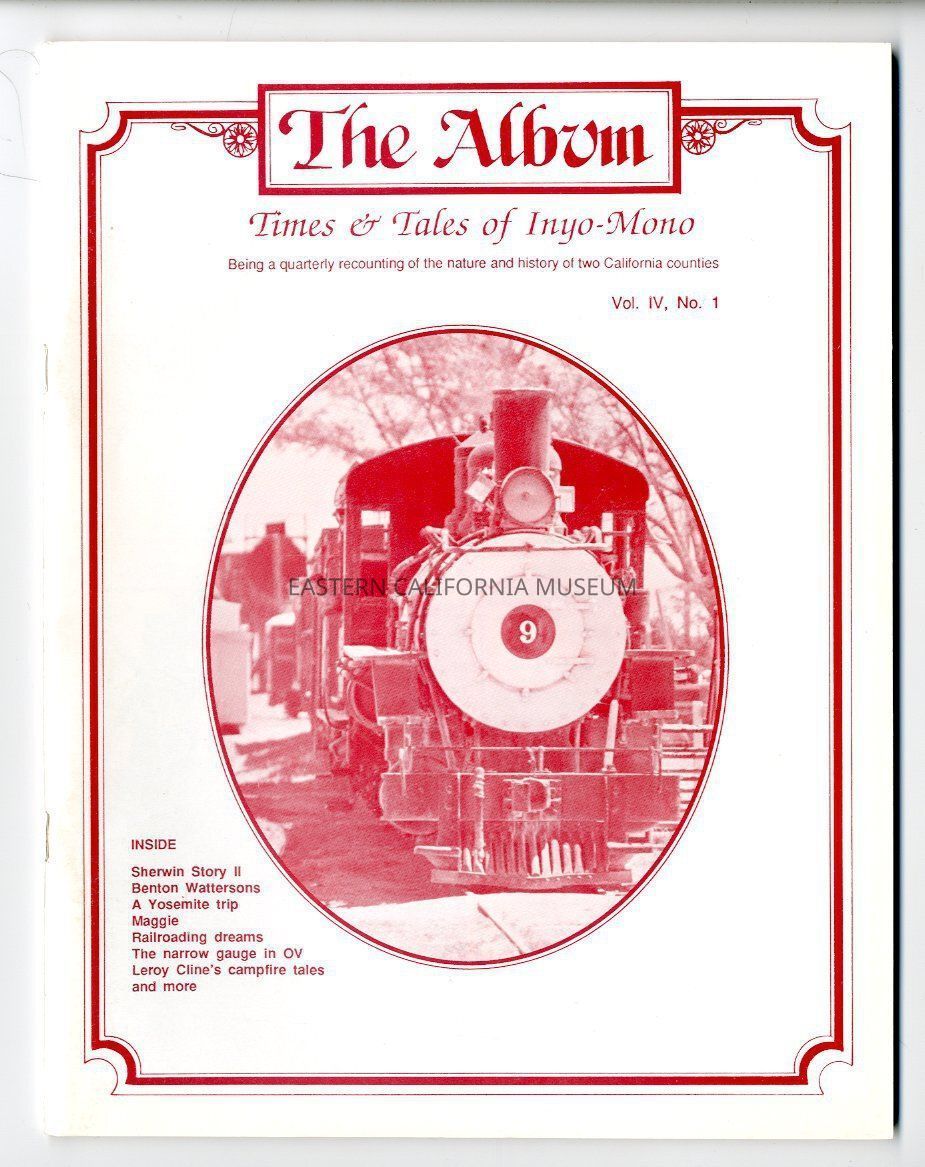 "The Album, Vol. 4, No. 1, January 1991" contains the following articles: The Sherwin Story Part II, The Wattersons of Benton, The Yosemite Trip, Maggie Deep Springs Jim, Railroading Dreams, The Narrow Gauge Railroad of Owens Valley, In a Far Away Vally, and Leroy Cline Tells It As It Is.Publication Details