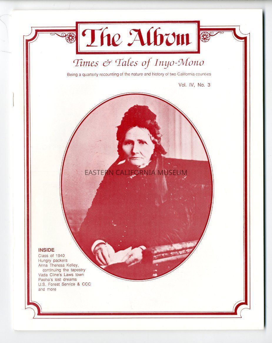 "The Album, Vol. 4, No. 3, July 1991" contains the following articles: BUES Class of 1940, Inyo National Forest and the CCC, Anna Theresa Kelley a Life, Feeding Hungry Packers, Laws Sweetest Little Town, Paoha Island of Shattered Dreams, and More Victor Larson Memories of Coleville in the 1800s.Publication Details