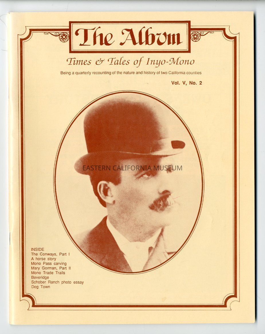 "The Album, Vol. 5, No. 2, April 1992" contains the following articles: Here Come the Conways Part I, Paisano a Good Little Horse, Mystery at Mono Pass, Mary Watterson Gorman Part II, Here My People Lived, Beveridge a Three-Mystery Ghost Town, Close to the Land, and Dead Dog in the Middle of the Road.Publication Details