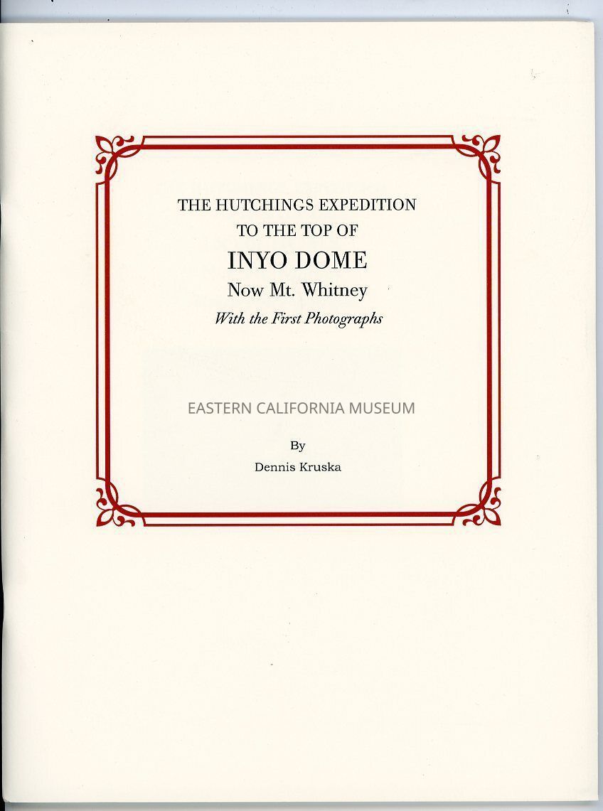 "The Hutchings Expedition to the Top of Inyo Dome Now Mt. Whitney with the First Photographs"Publication Details