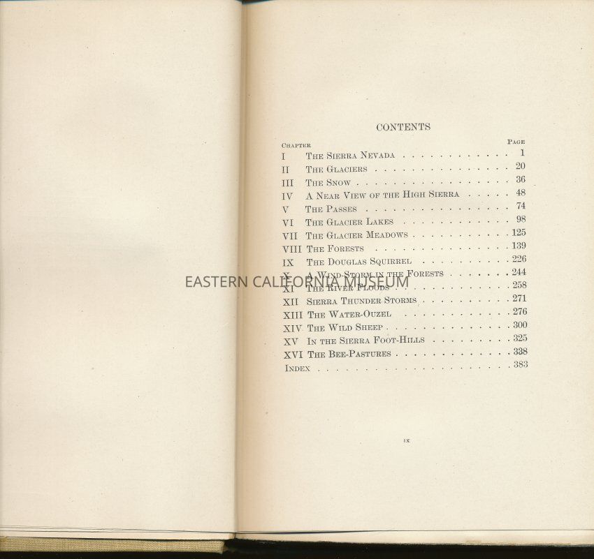 This volume written by John Muir with his ebullient spirit and love of nature infuses these accounts of visiting Yosemite Valley, Kings Canyon, sequoia groves, and Mount Whitney. Blending keen observations of flora, geography, and geology, the natural forces that shape the landscape, and the changing seasons, Muir paints a timeless portrait of the wilderness he called “the Range of Light". CONTENTS: 1. THE SIERRA NEVADA; 2. THE GLACIERS; 3. THE SNOW; 4. A NEAR VIEW OF THE HIGH SIERRA; 5. THE PASSES; 6. THE GLACIER LAKES; 7. THE GLACIER MEADOWS; 8. THE FORESTS; 9. THE DOUGLAS SQUIRREL; 10. A WIND-STORM IN THE FORESTS; 11. THE RIVER FLOODS; 12. SIERRA THUNDER-STORMS; 13. THE WATER-OUZEL; 14. THE WILD SHEEP; 15. IN THE SIERRA FOOT-HILLS; 16. THE BEE-PASTURES.