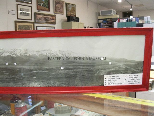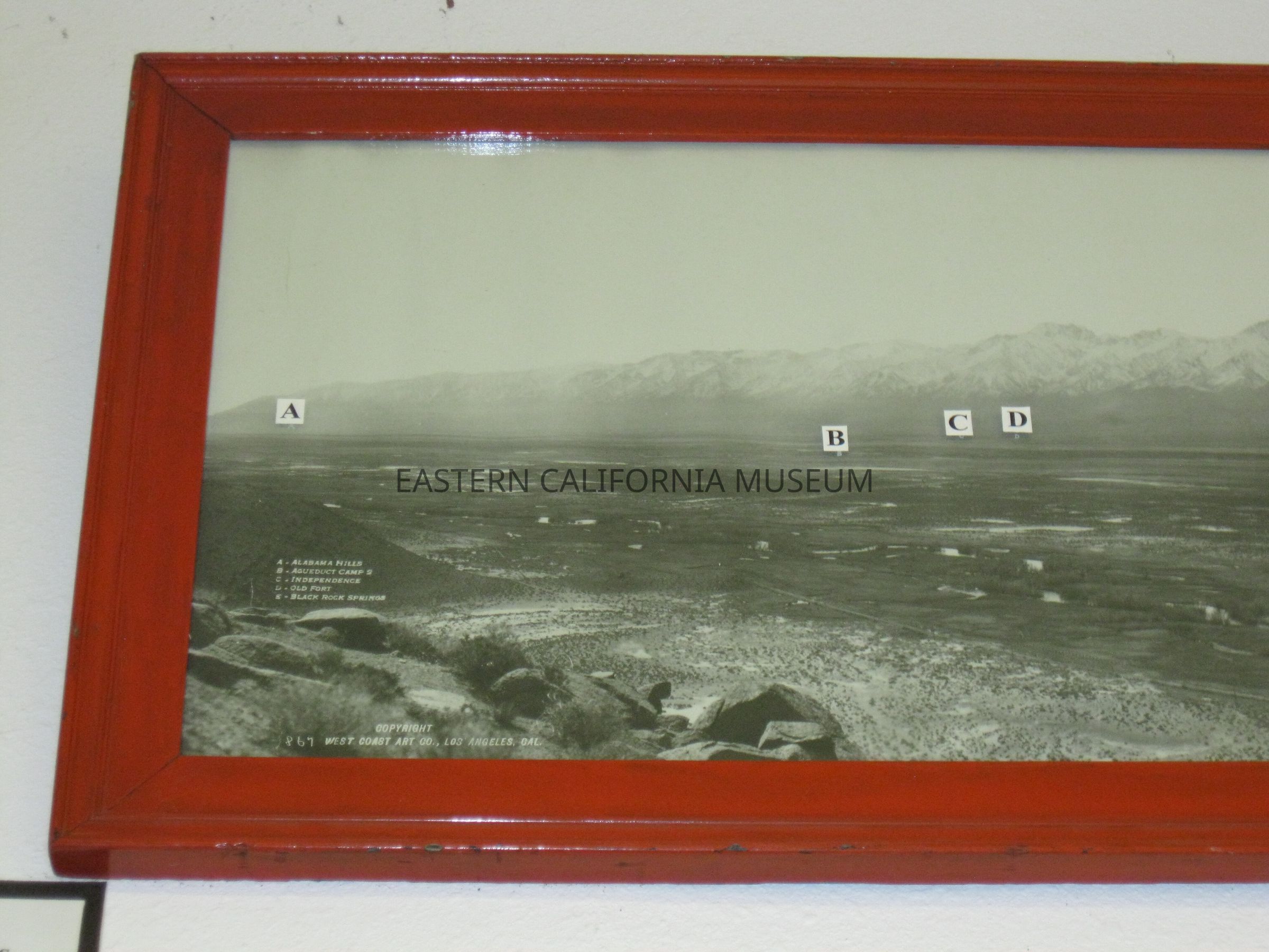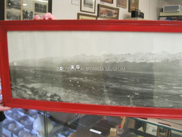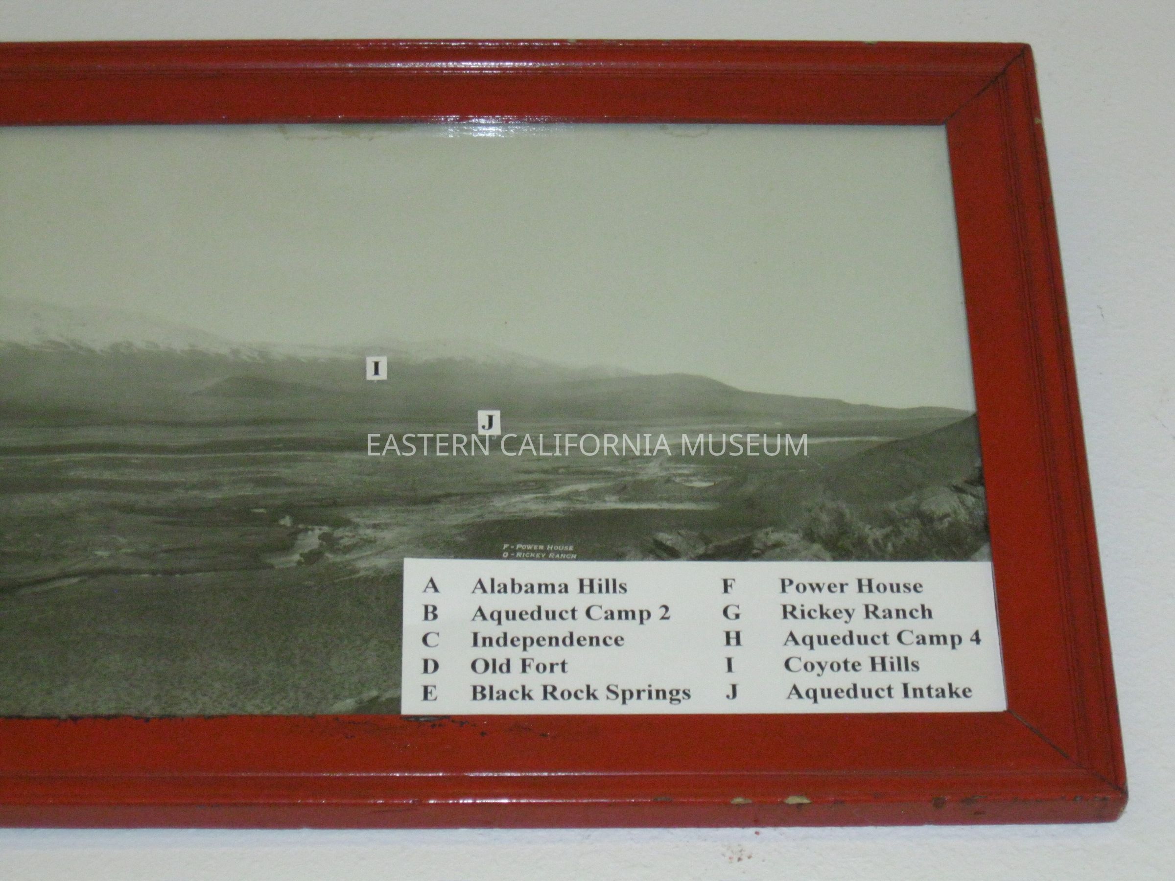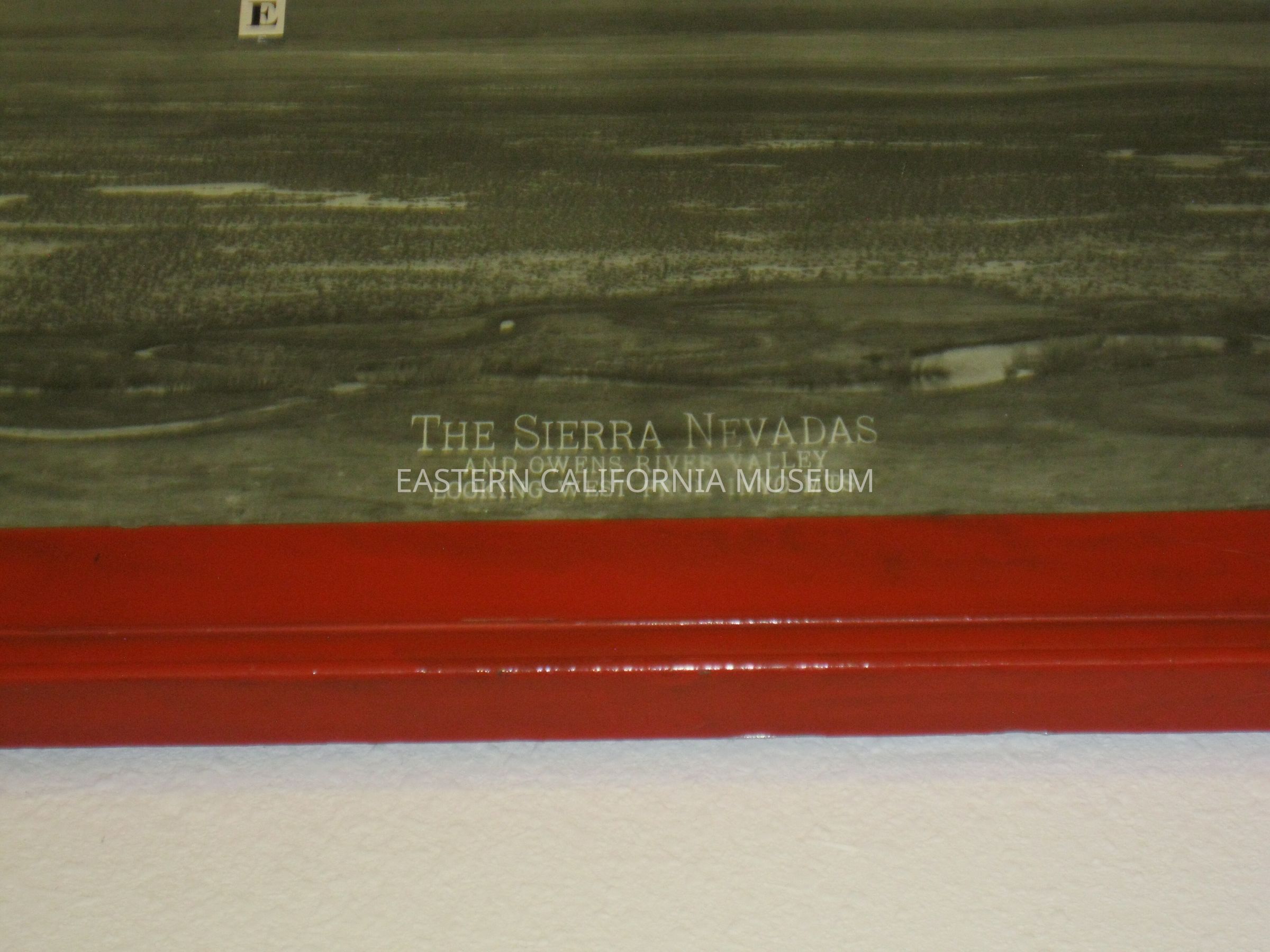 Framed panoramic photo of the Sierra Nevada taken from the Inyo Mountains encompassing Poverty Hills and south of Independence. This photograph hung over the piano in the lobby of the Hotel Independence when A. Loren and Mary Williams, parents of Art Williams, bought the hotel from the Levys in early 1944. The Williams owned the hotel until early in 1946.Collection