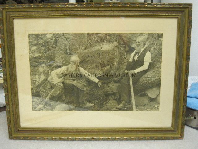 Framed and matted photograph of famous naturalists John Burroughs (left) and John Muir (right) in Yosemite, May 1909.