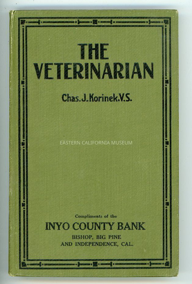 "The Veterinarian" was presented to M. J. Uhlik on April 23, 1919. It is stamped "Compliments of the Inyo County Bank" on the cover.Book Details