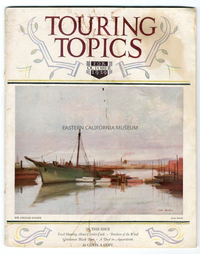 "Touring Topics, Vol. 21, No. 10, October 1929" contains an article written by Norman Clyde titled, "Mountaineering in the Canadian Rockies: A Relation of Experiences in the Ascent of Some Noted Dominon Peaks."Collection