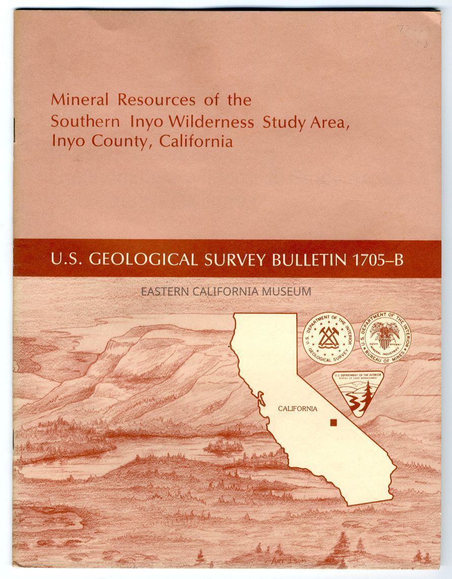 U.S. Geological Survey Bulletin 1705-B: Mineral Resources of the Southern Inyo Wilderness Study Area, Inyo County, California
