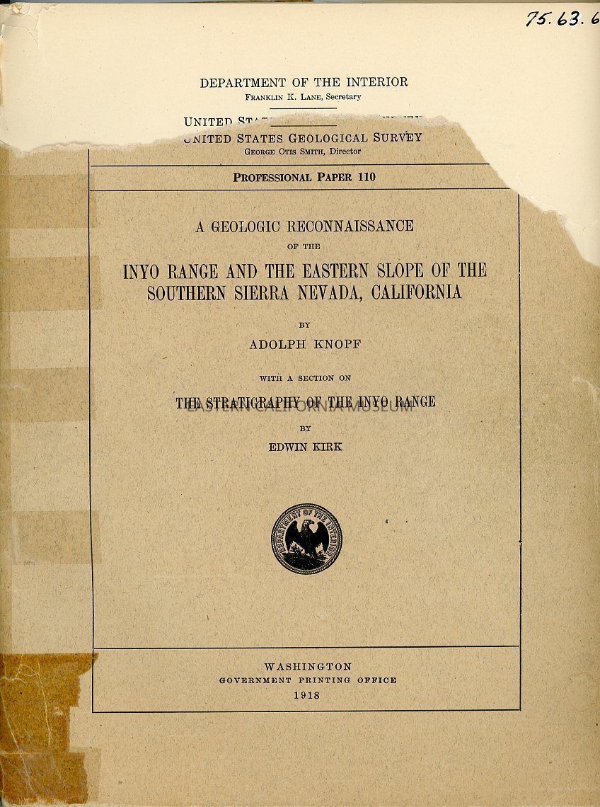 United States Department of the Interior, Geological Survey, Professional Paper 110: A Geologic Reconnaissance of the Inyo Range and the Eastern Slope of the Southern Sierra Nevada, CaliforniaEntry/Object ID