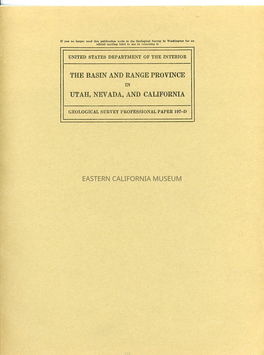 United States Department of the Interior, Geological Survey, Professional Paper 197-D: The Basin and Range Province in Utah, Nevada, and CaliforniaEntry/Object ID