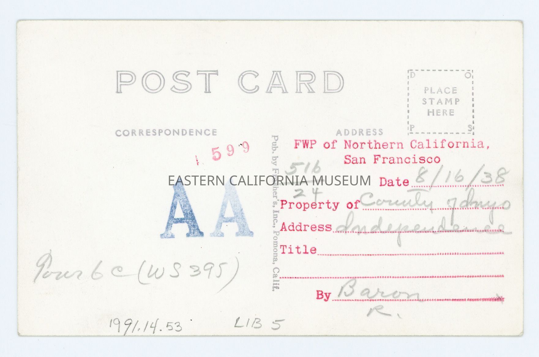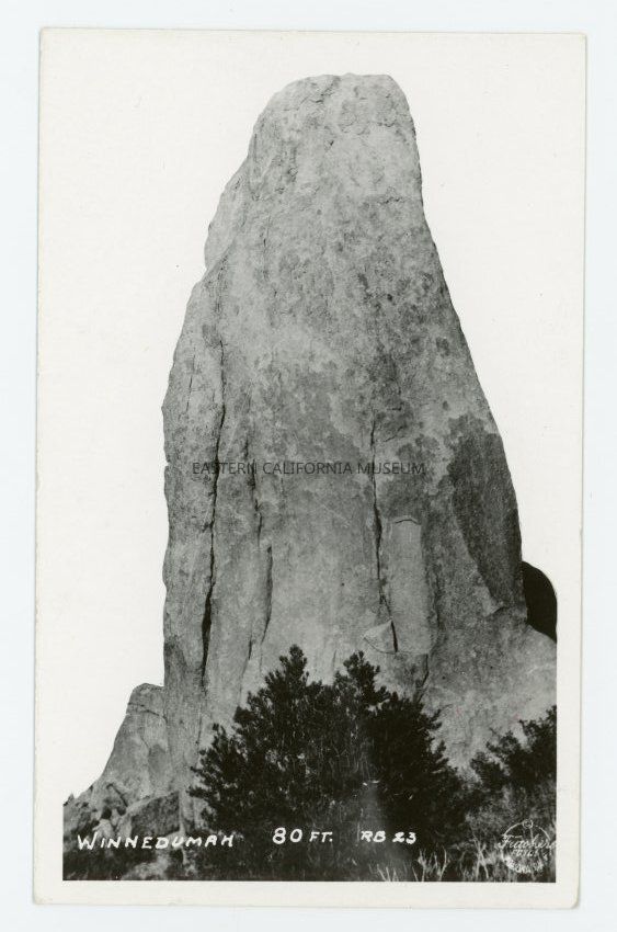 Photo postcard of Winnedumah Paiute Monument in the Inyo Mountains.