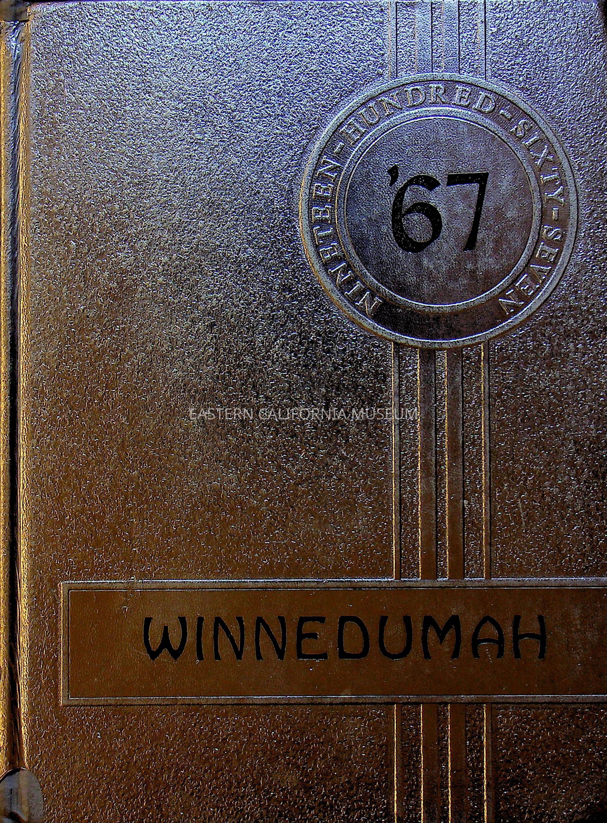 Owens Valley High School yearbook, the Winnedumah, 1967. It has lots of messages written inside the covers and flyleafs and belonged to a student named Mary. At some point former museum director Phil Walker acquired it.Collection