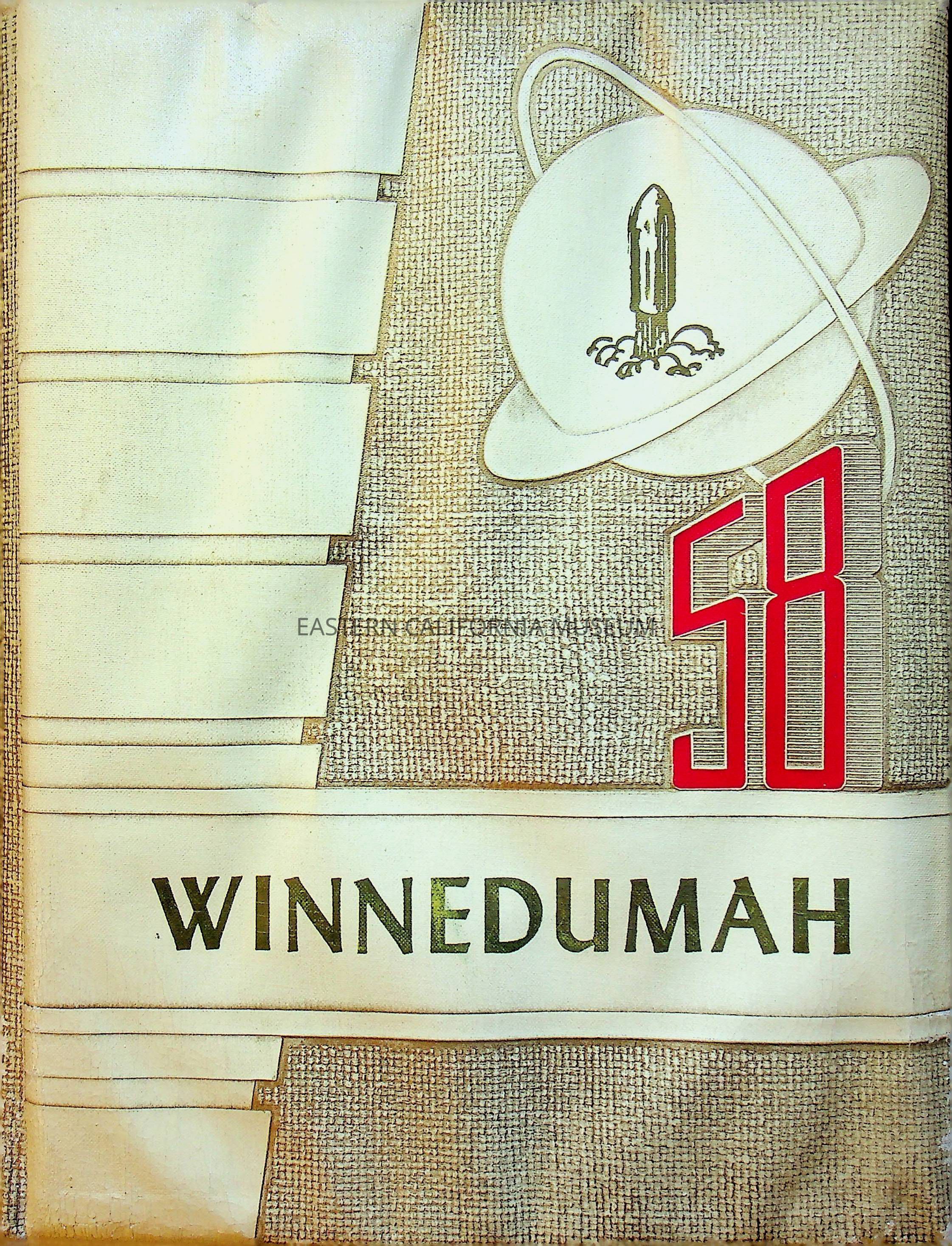 Owens Valley Unified School yearbook, the Winnedumah, 1958. Has "Sandy + CJ Walters" written inside the front cover.
