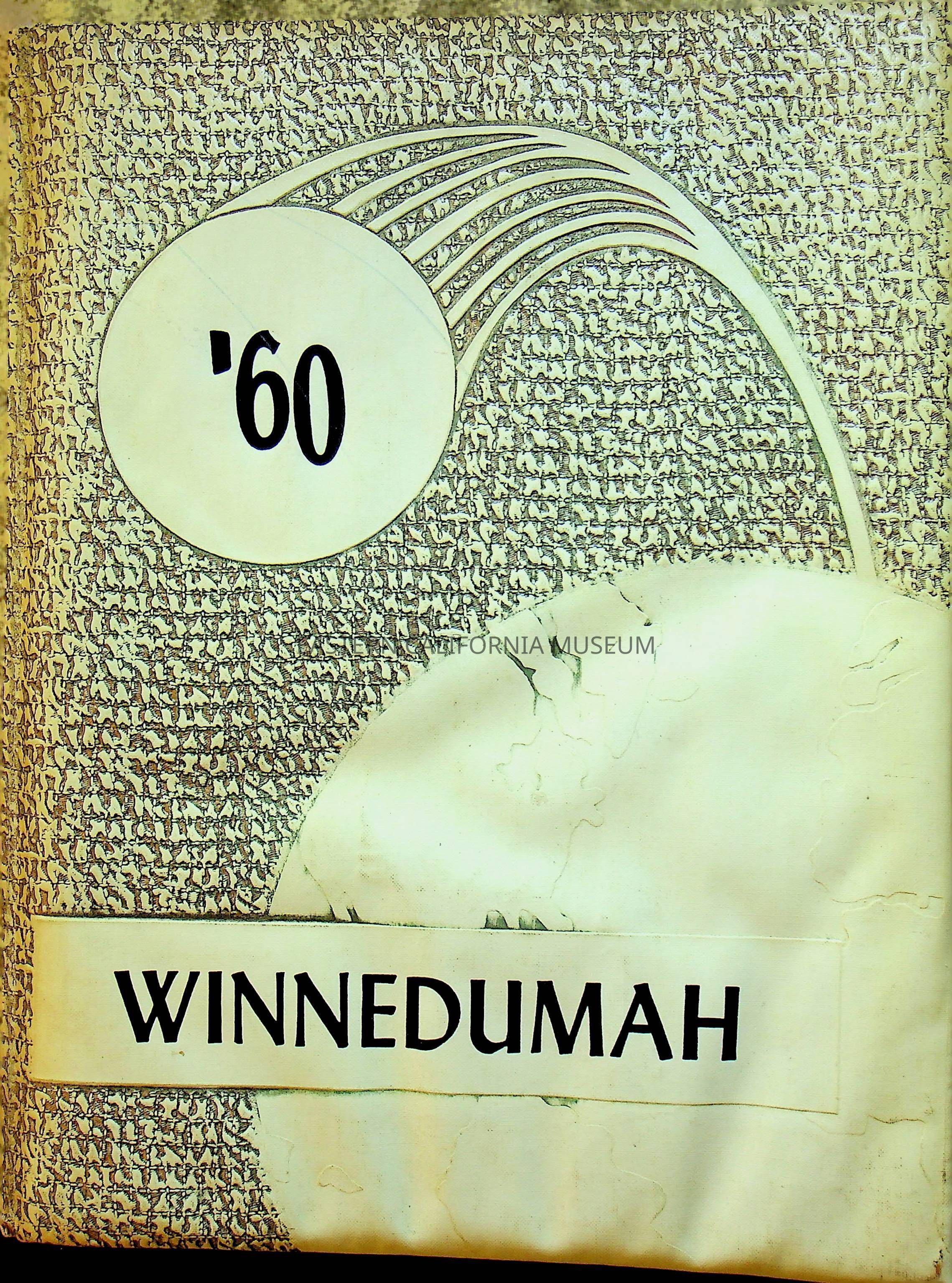 Owens Valley High School yearbook, the Winnedumah, 1960. There are two messages written inside the front cover.
