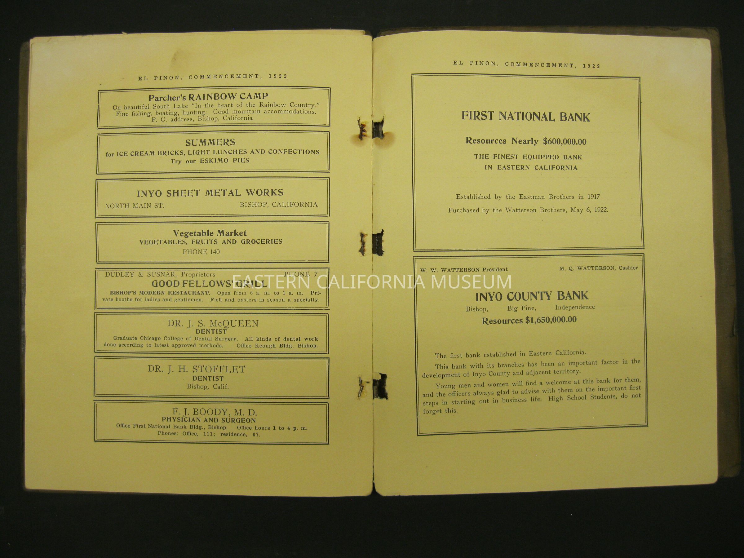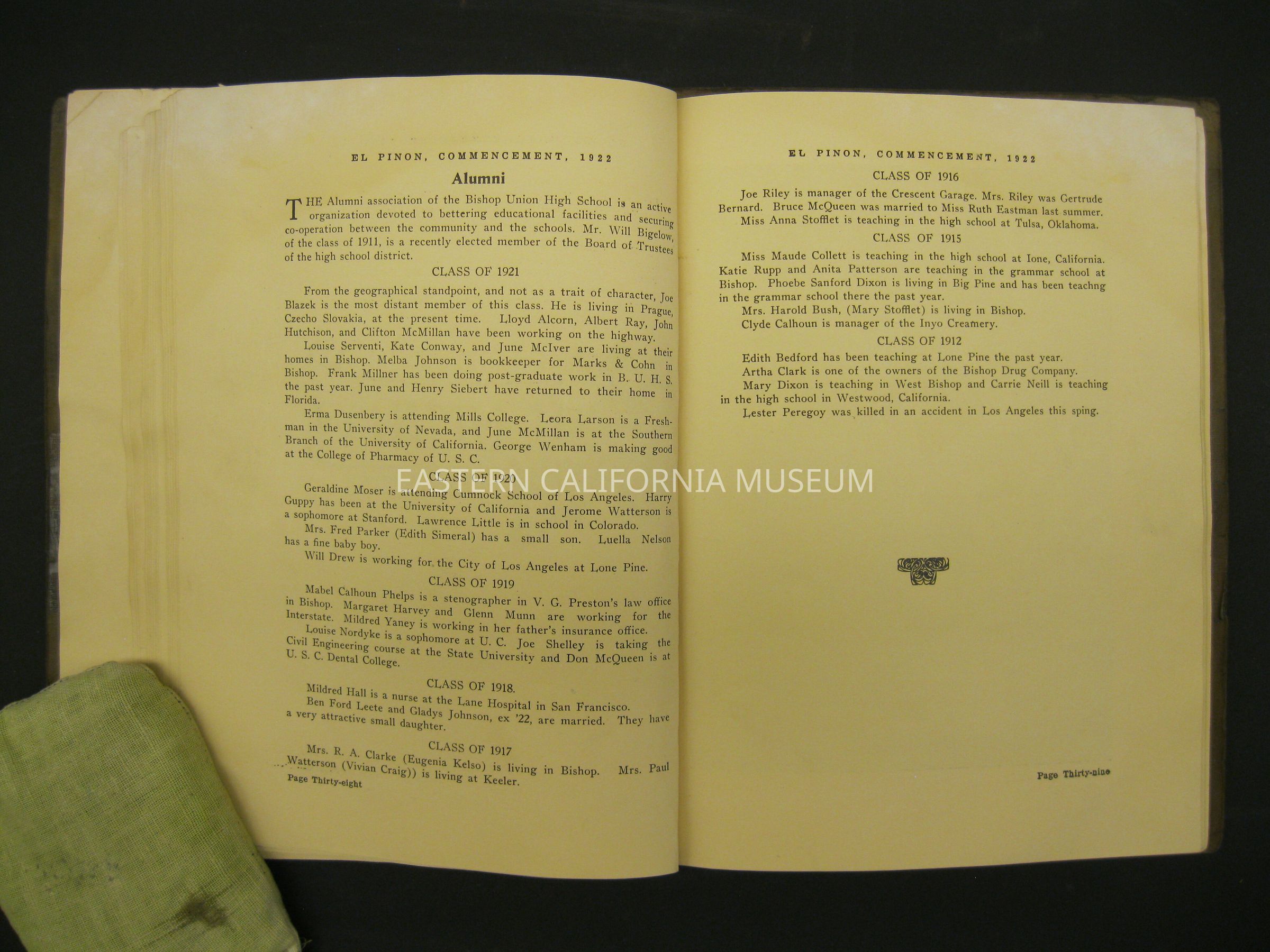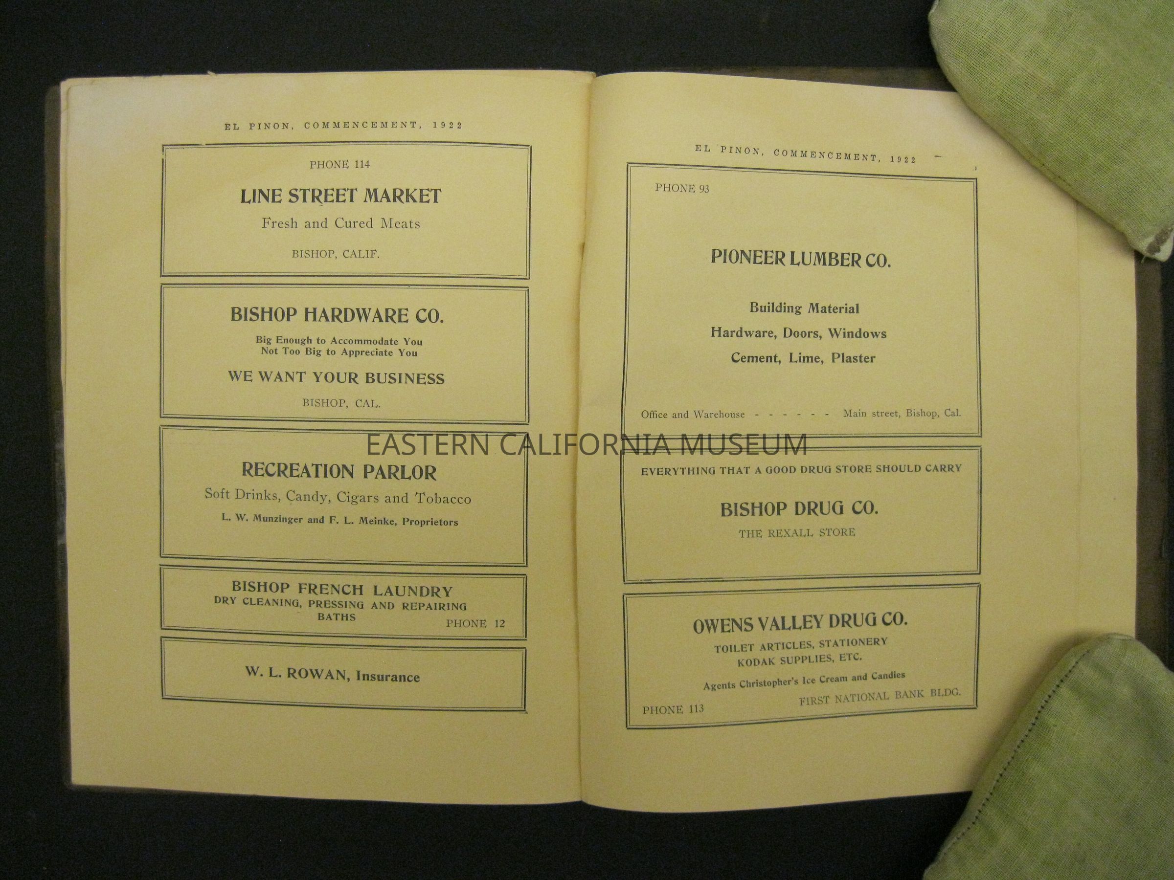 Yearbook: 1922 Bishop Union High School yearbook titled, El Pinon.