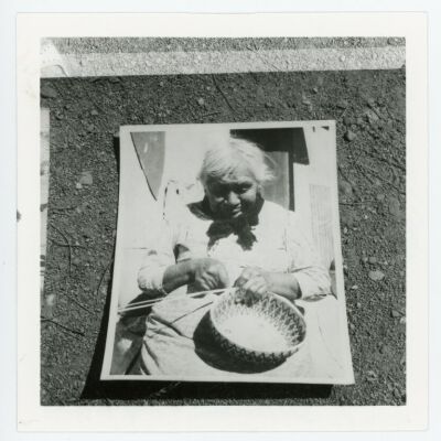 WRA no. B-204: photograph of four girls playing basketball with crowd watching at Manzanar