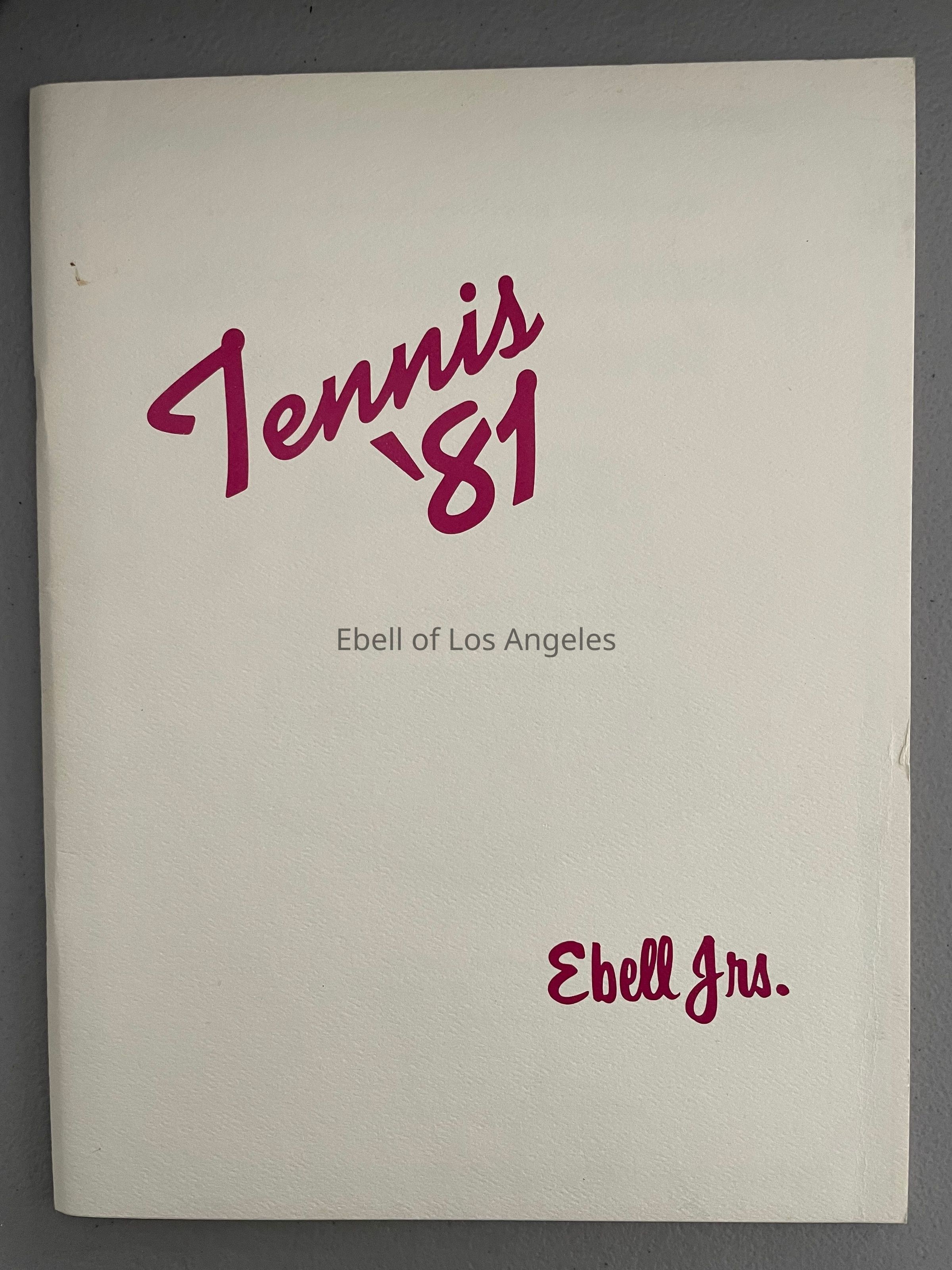 Ebell Juniors of L.A. 1981 photo album. Candid shots during events. Includes Tennis ‘81 and ‘82 tournament publications and Design Center directory 1982-1983.