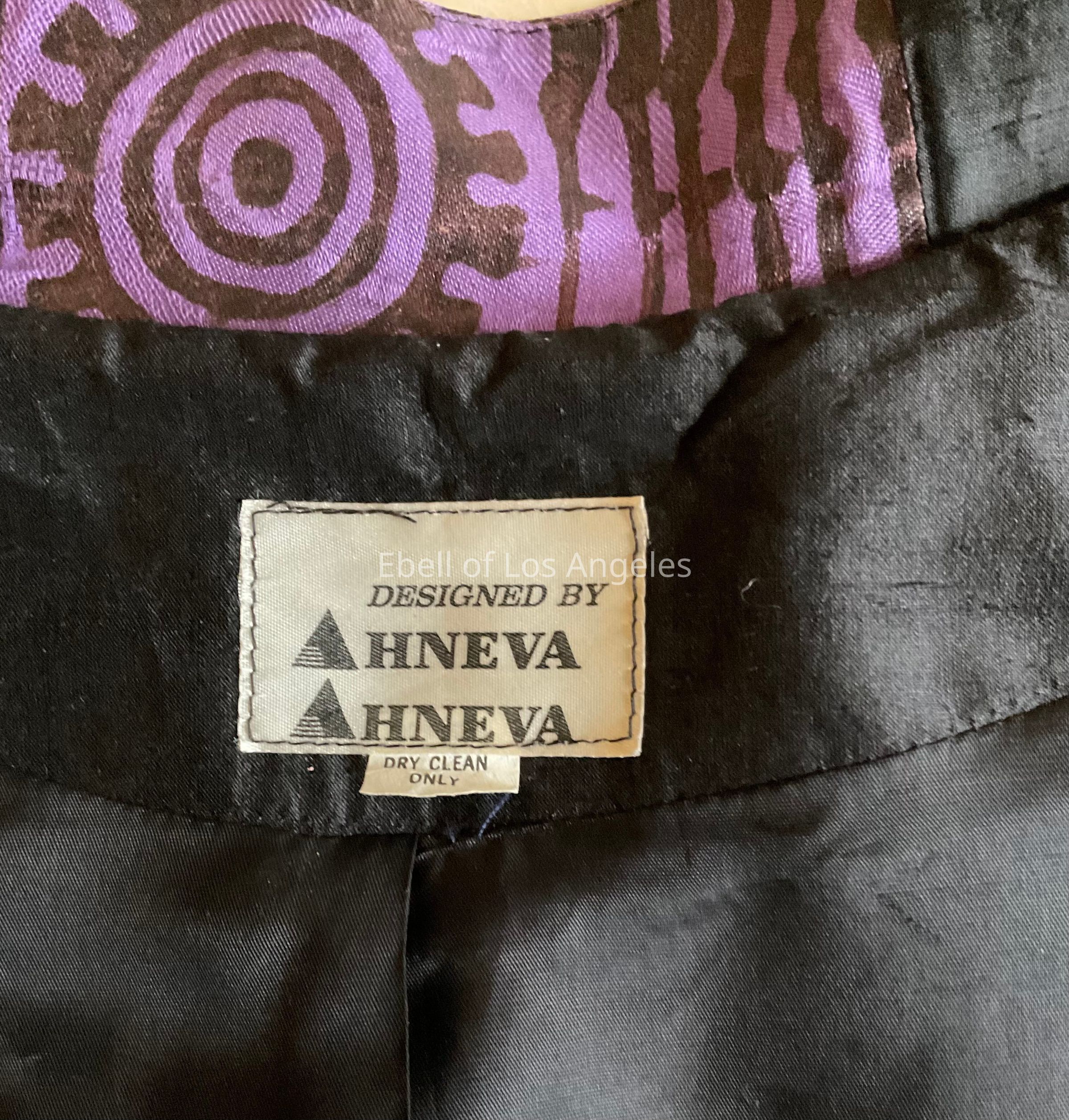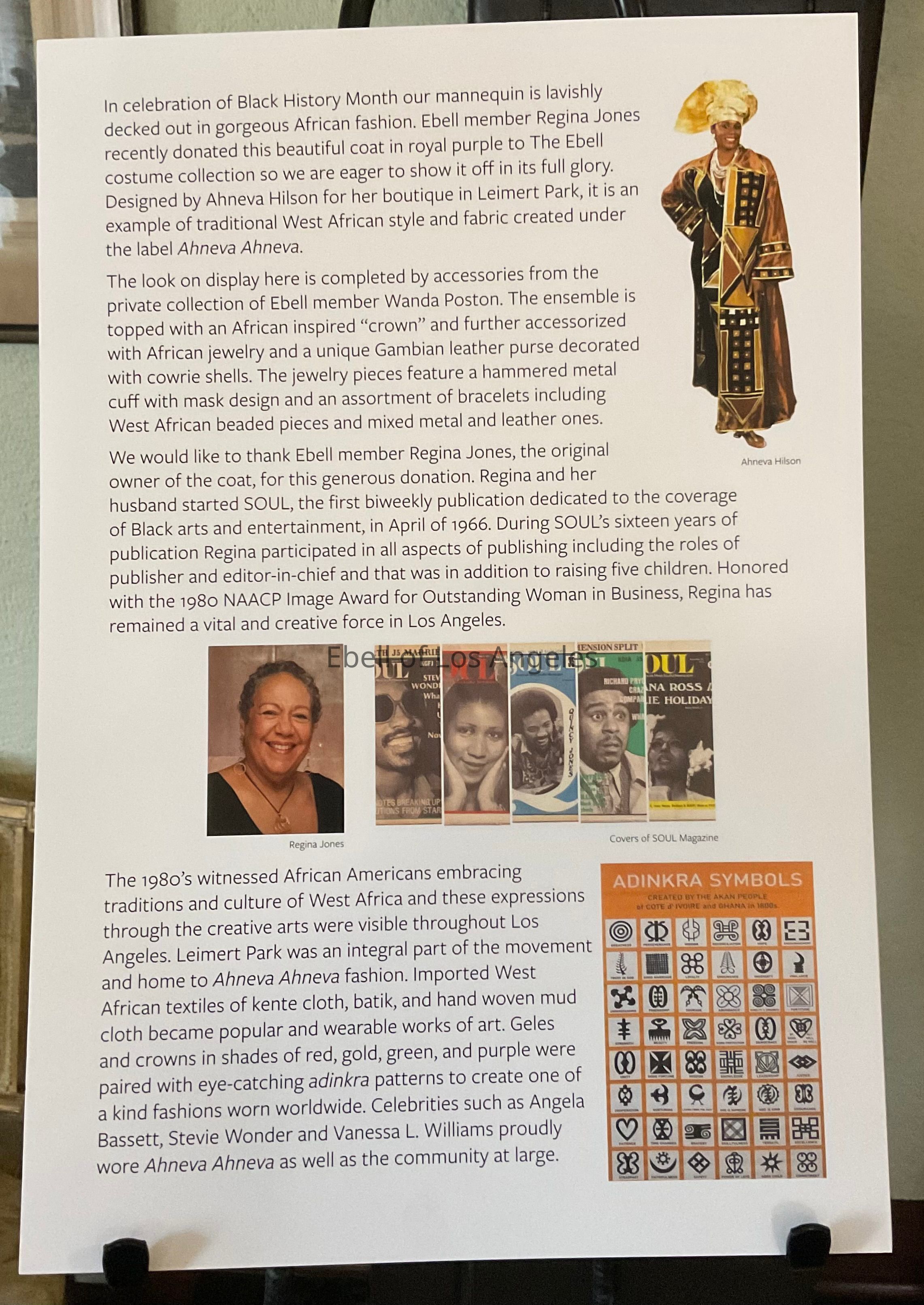 Open front black coat with vertical purple panels bearing West African adinkra symbolsEntry/Object ID