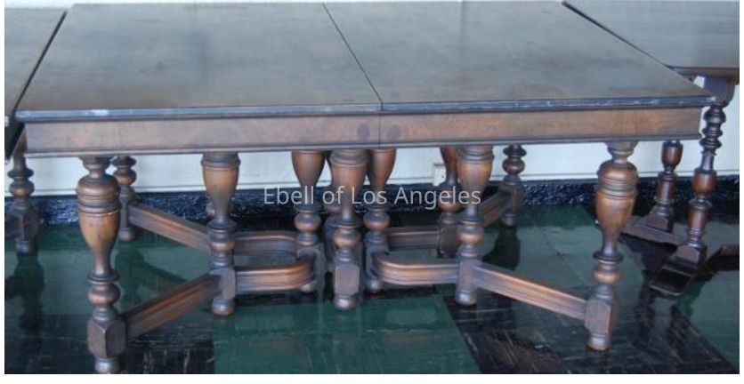 Pair of walnut extension dining tables with turned legs and Y shaped stretcher bars.