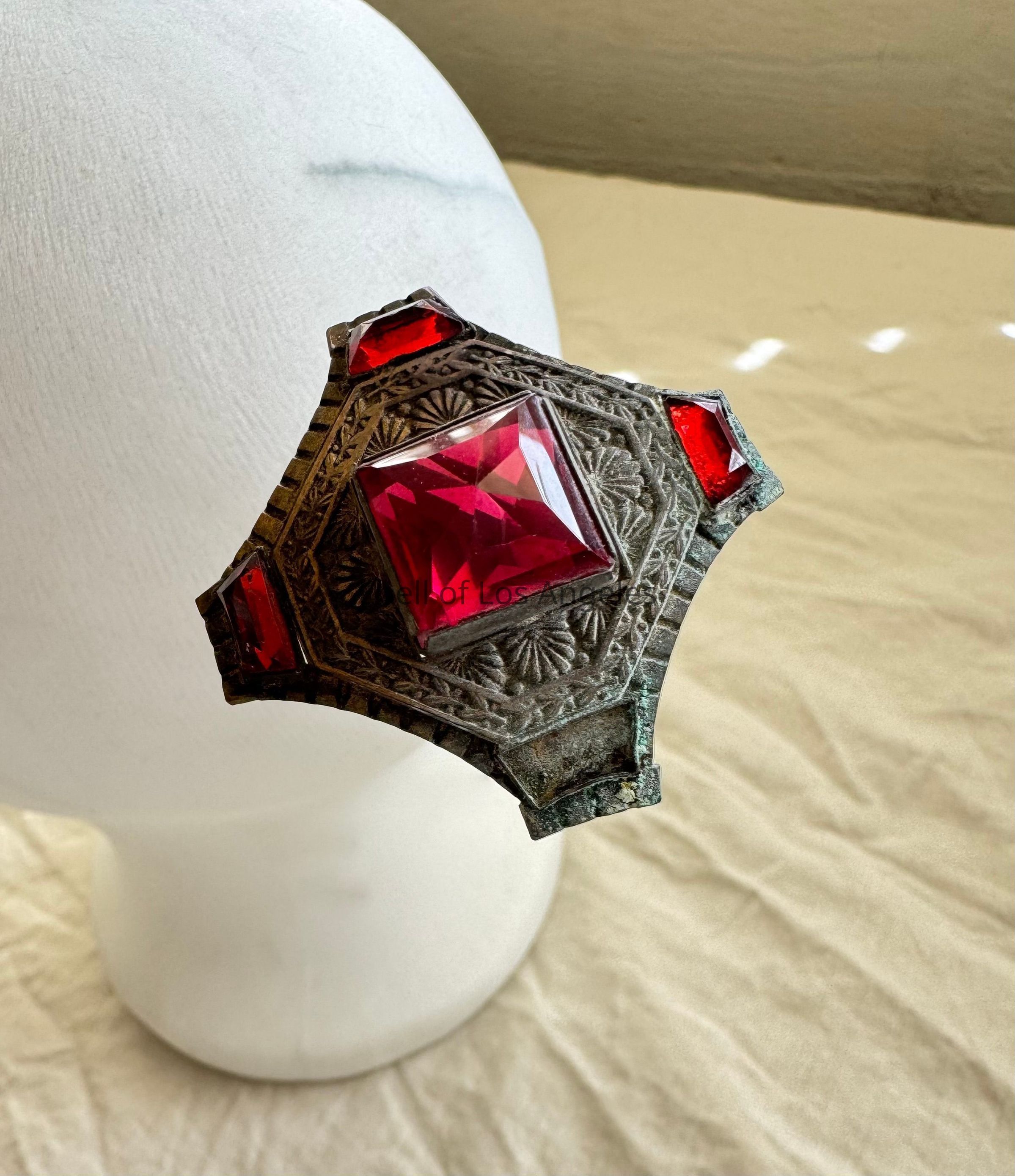 Hat Pin with Large Red Square Cut Gem