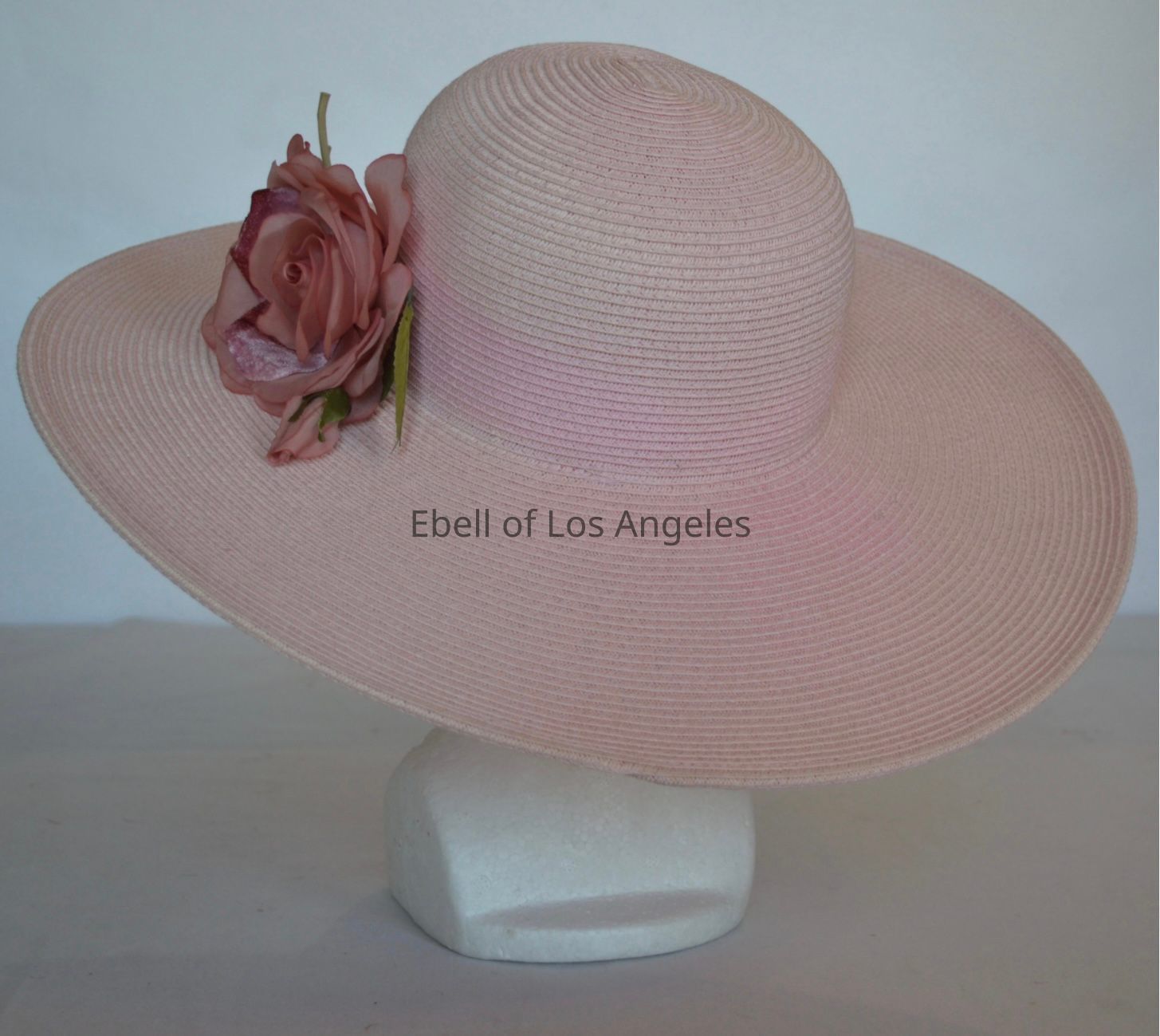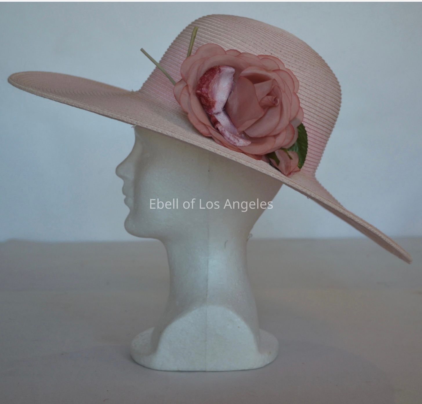 Pink wide brimmed hat with large pink roseEntry/Object ID