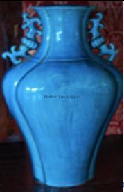 turquoise blue celadon (?) vase with decorative handles. 20th century. #34