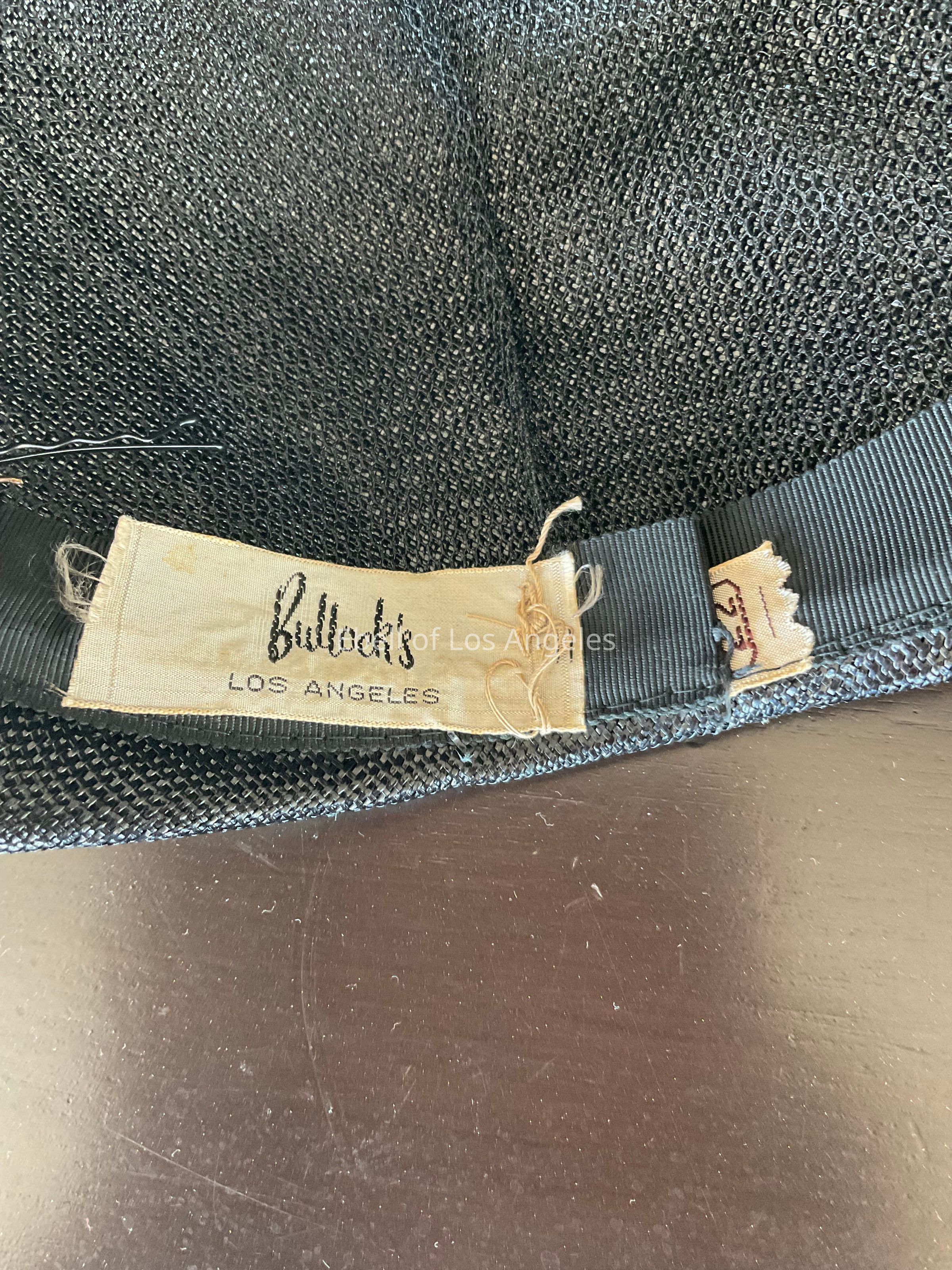 Black straw close fitting half hat with small brim and black velvet trimEntry/Object ID