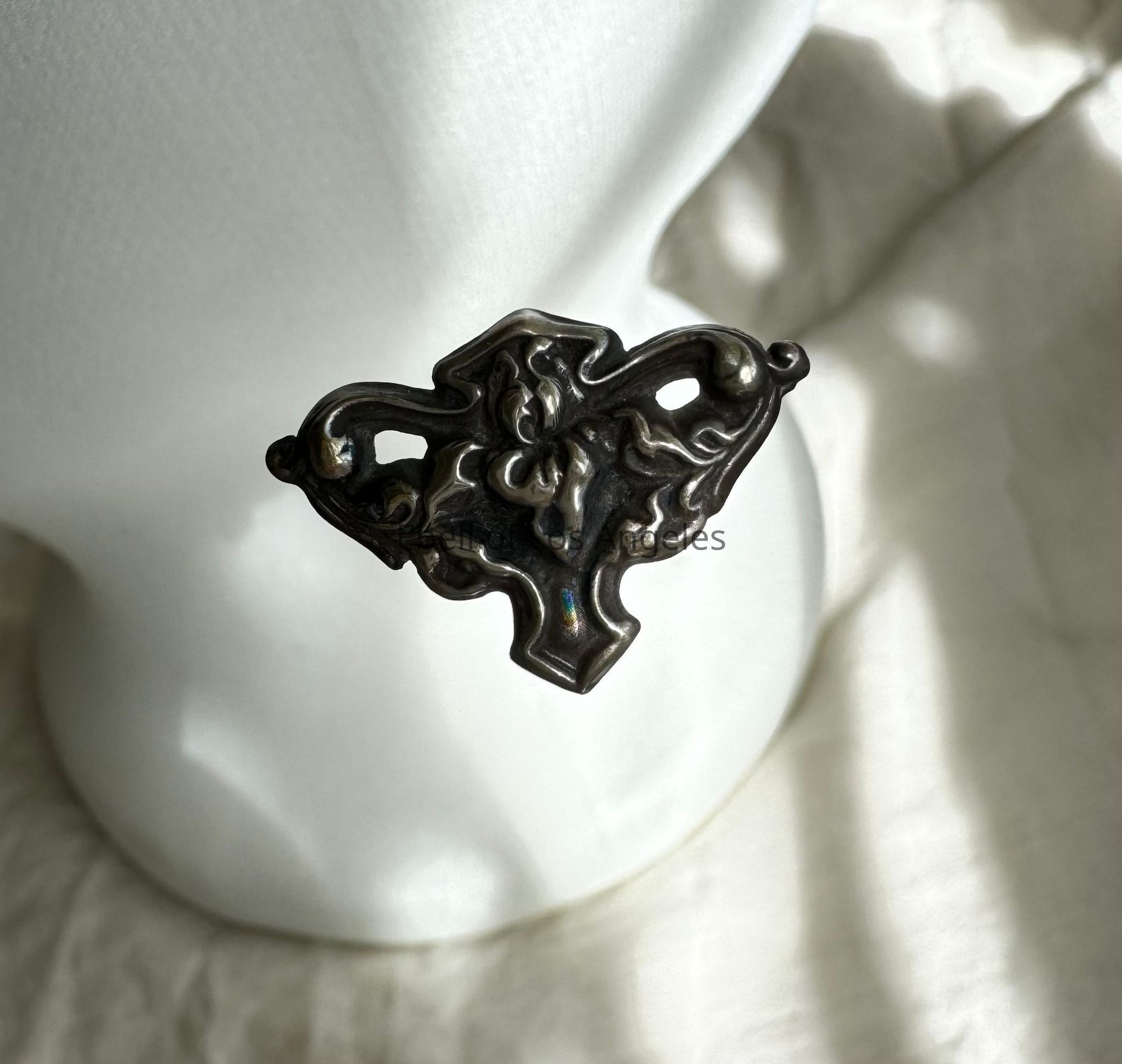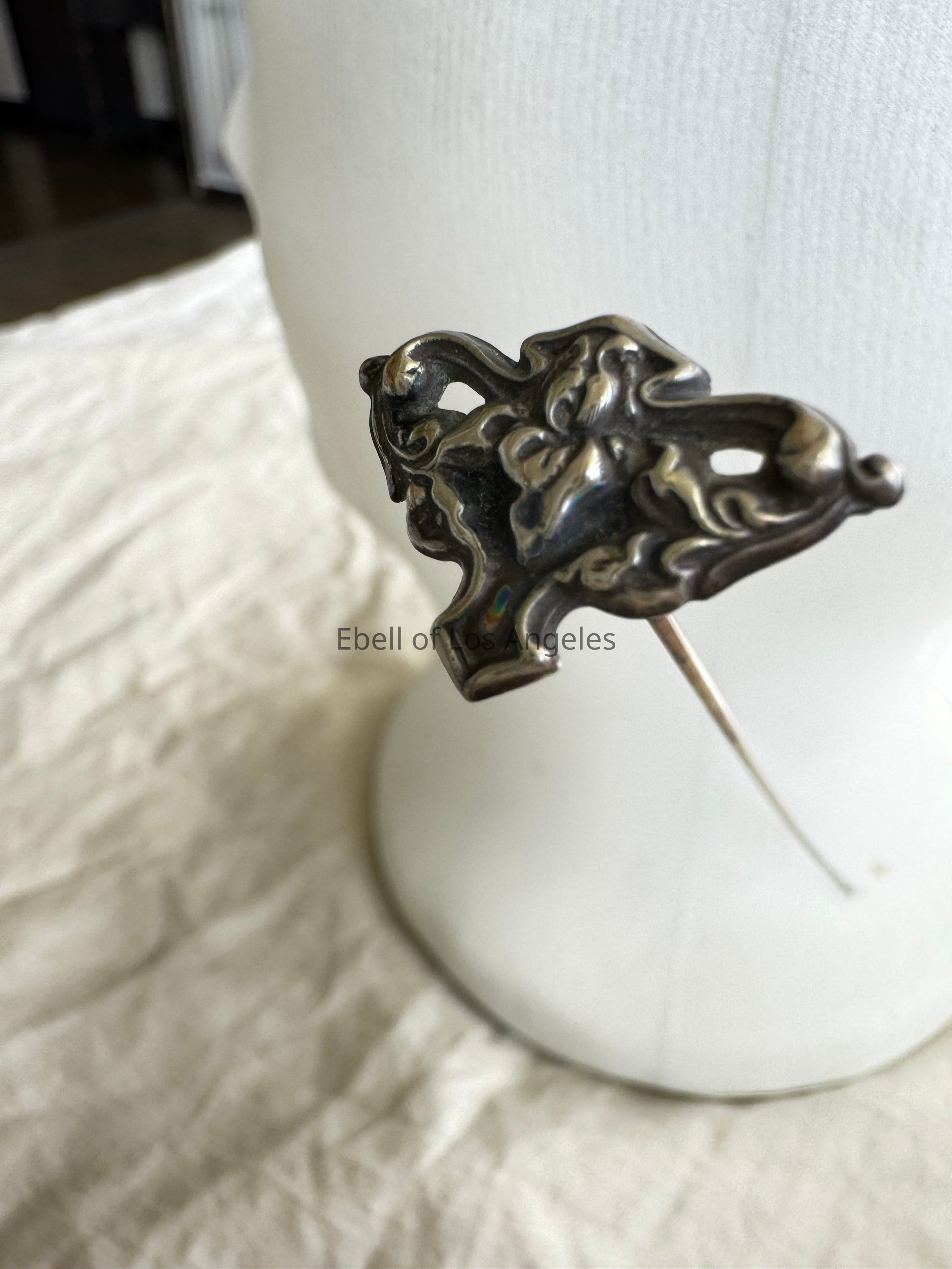 Hat Pin - Sterling Silver Art Nouveau Floral Tri Shape Pin