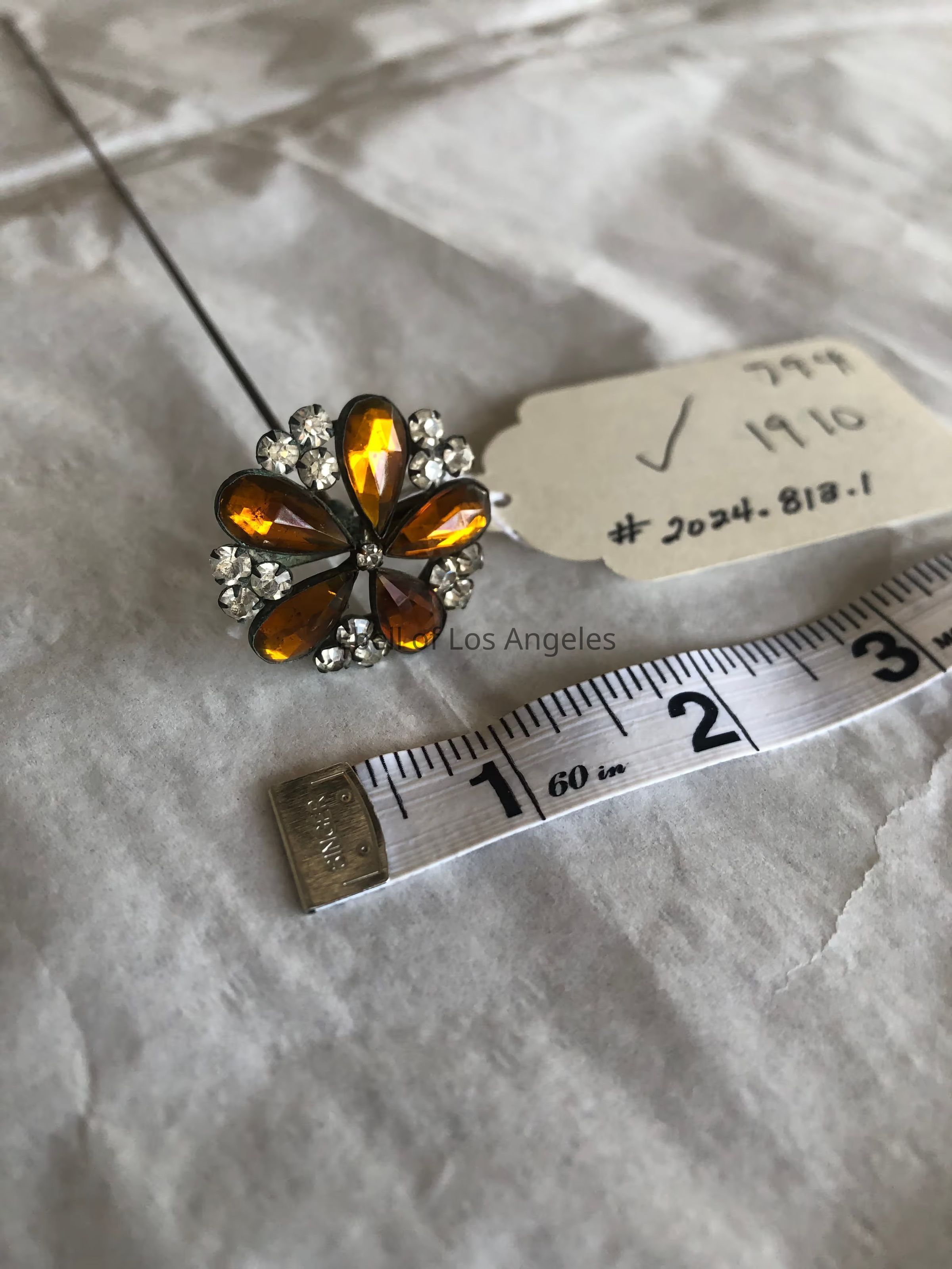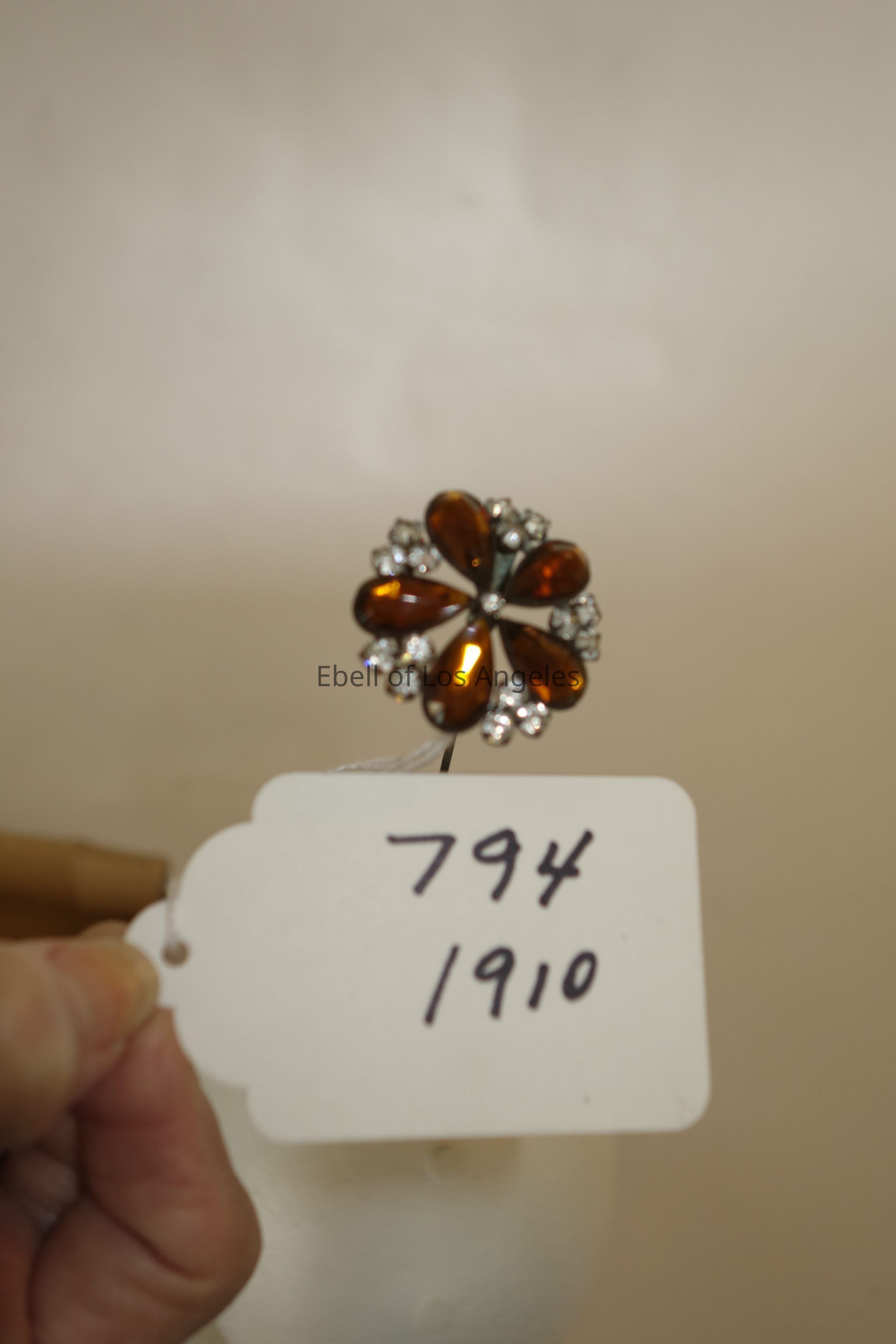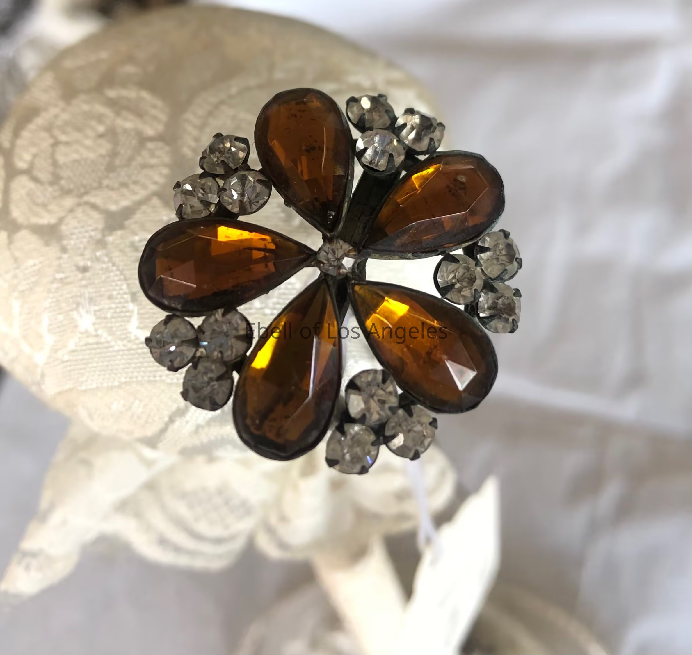 Rhinestone Hat Pin, 5 Teardrop Brown Rhinestone Petals and 5 Clusters of Smaller Clear Rhinestones