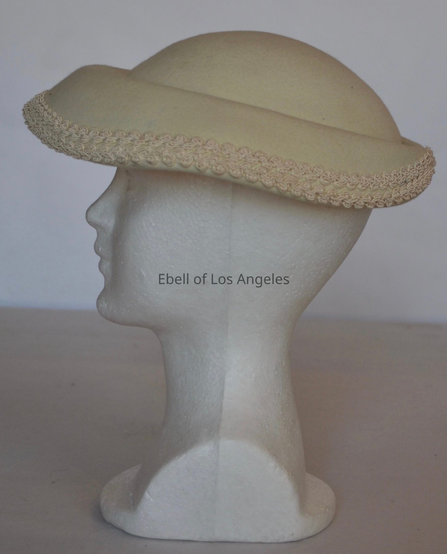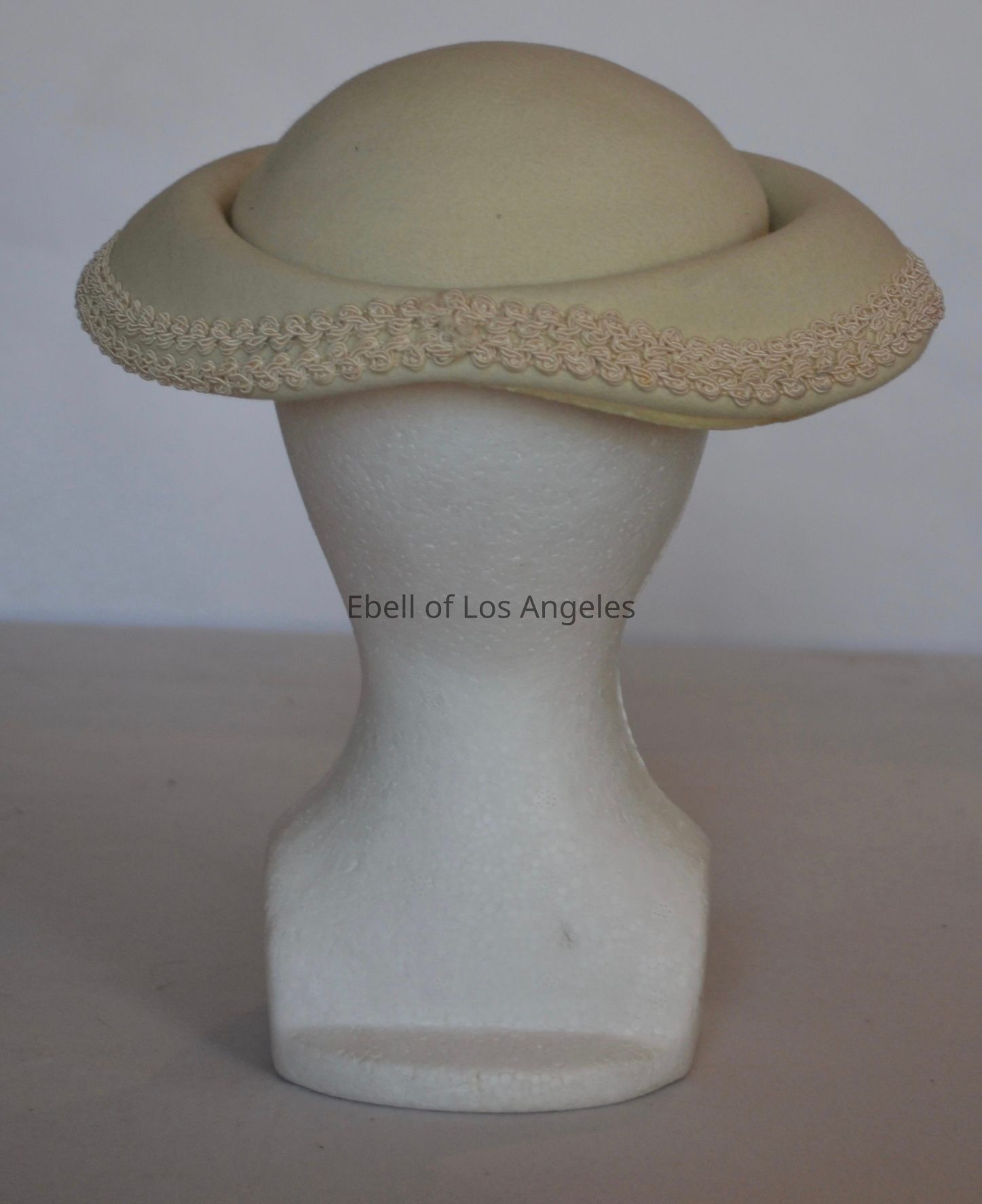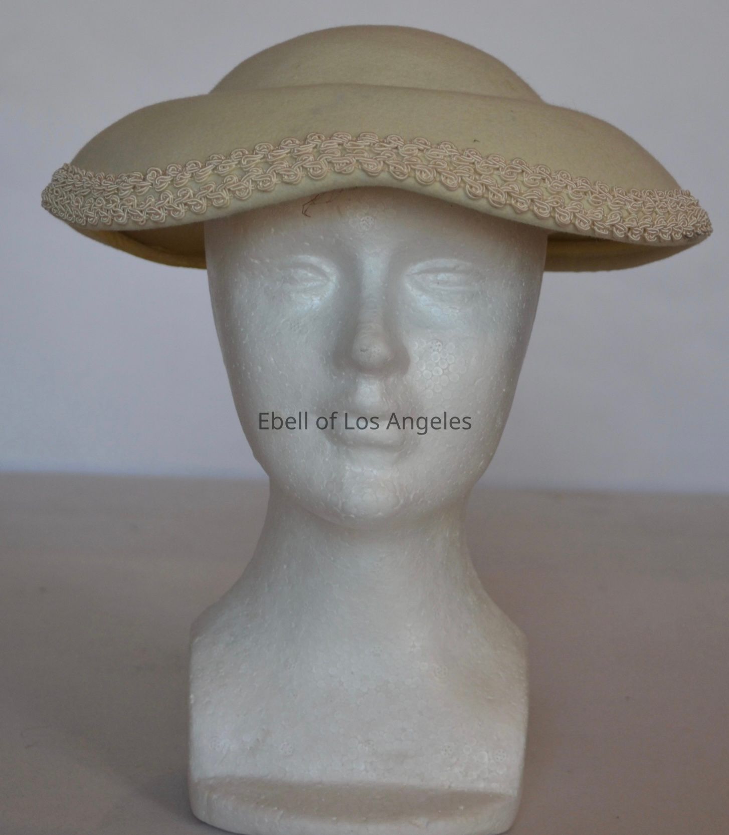 Wool felt hat with small crown and trim at edge of downturned scalloped brimEntry/Object ID